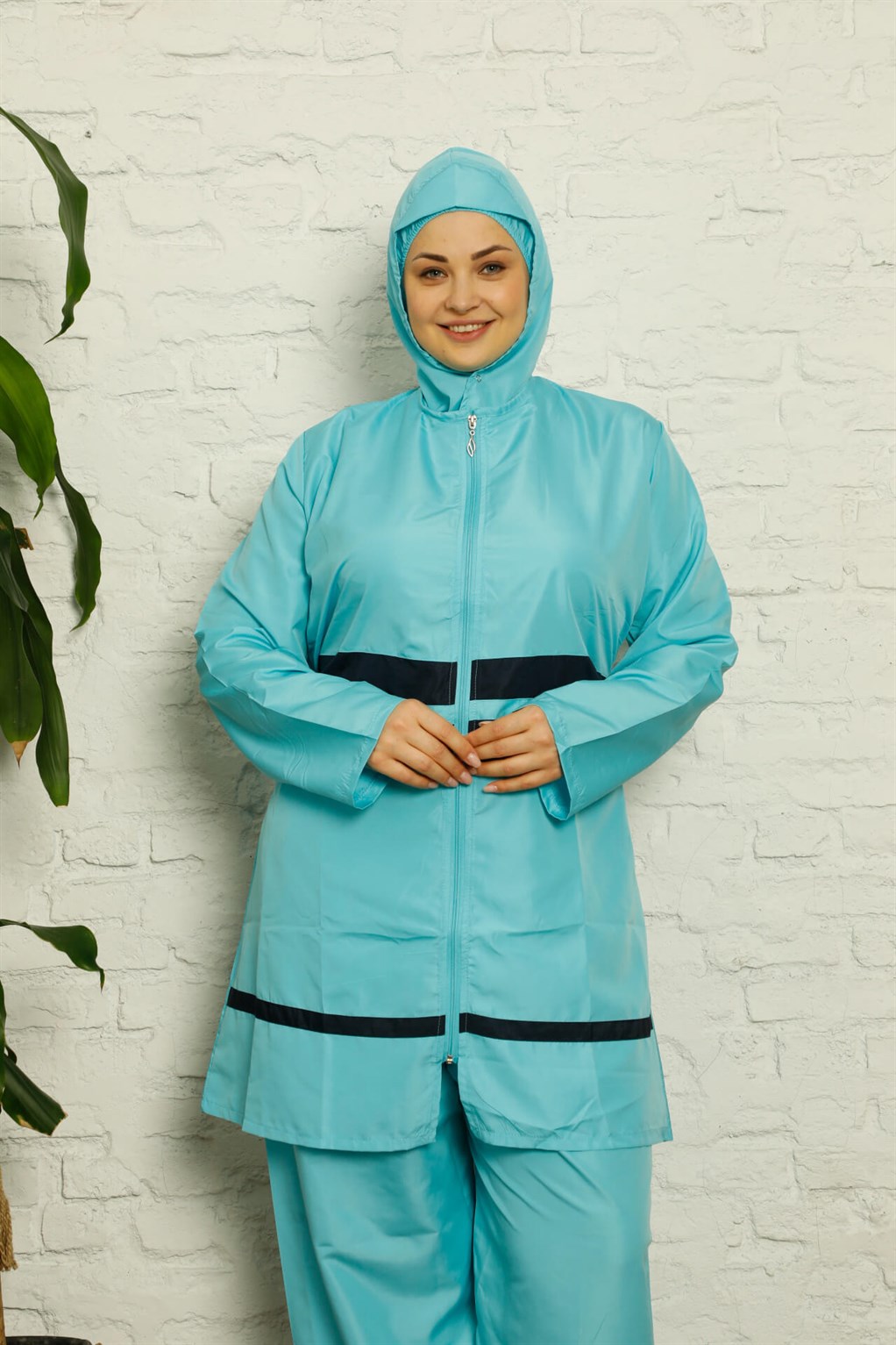 **Moda Çizgi Tam Tesettür Büyük Beden Mayo**