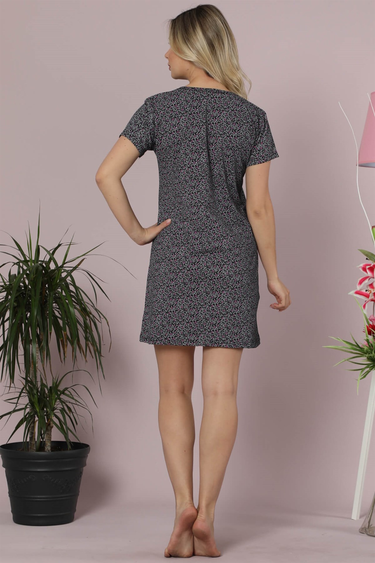 Kadın Pamuklu Kısa Kol Tunik Gecelik 853