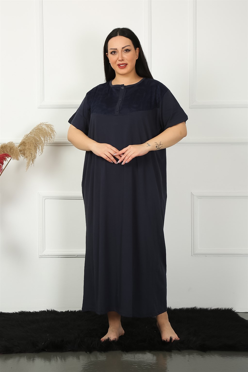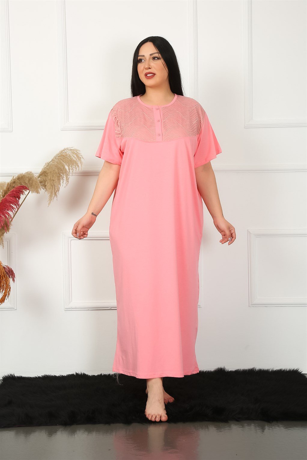 Artmodam Big Dantelli Kısa Kol Siyah Anne Gecelik 1348