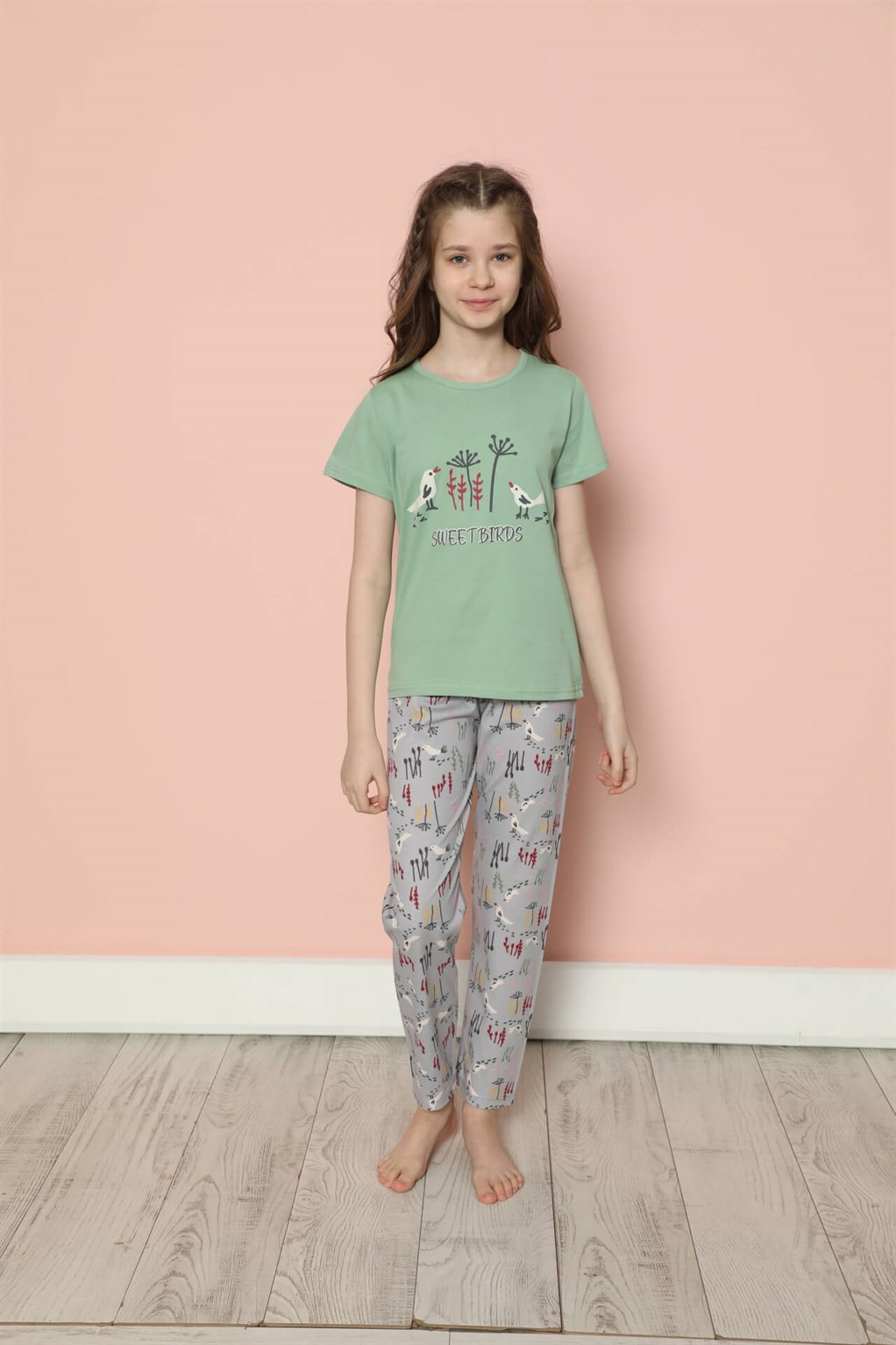 Moda Çizgi Çocuk Pamuk Kısa Kollu Pijama Takımı 20585Y
