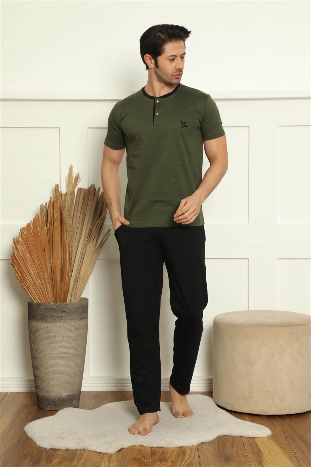 Moda Çizgi Erkek %100 Pamuk Cepli 3'lü Pijama Takımı