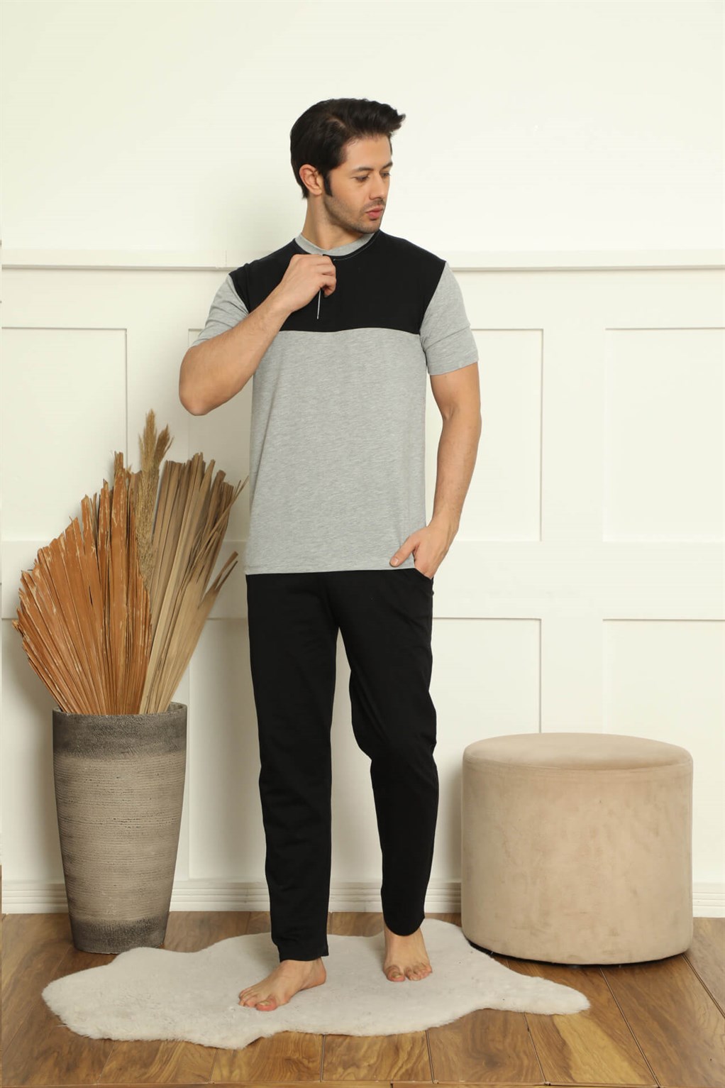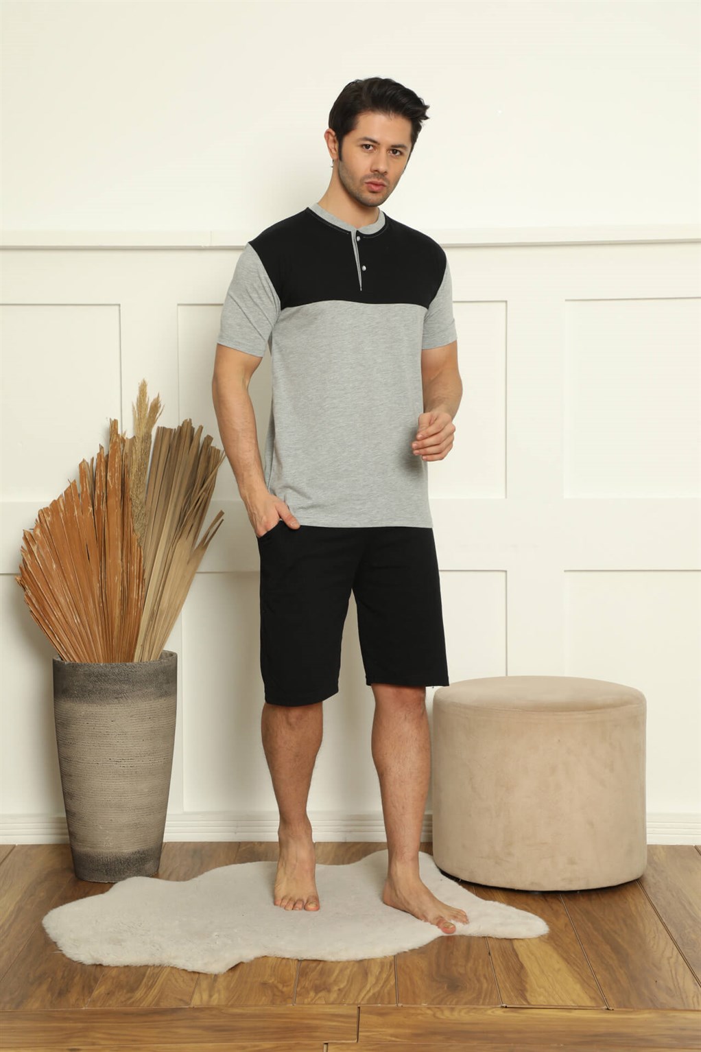 Moda Çizgi Erkek %100 Pamuk Cepli 3'lü Pijama Takımı 6778