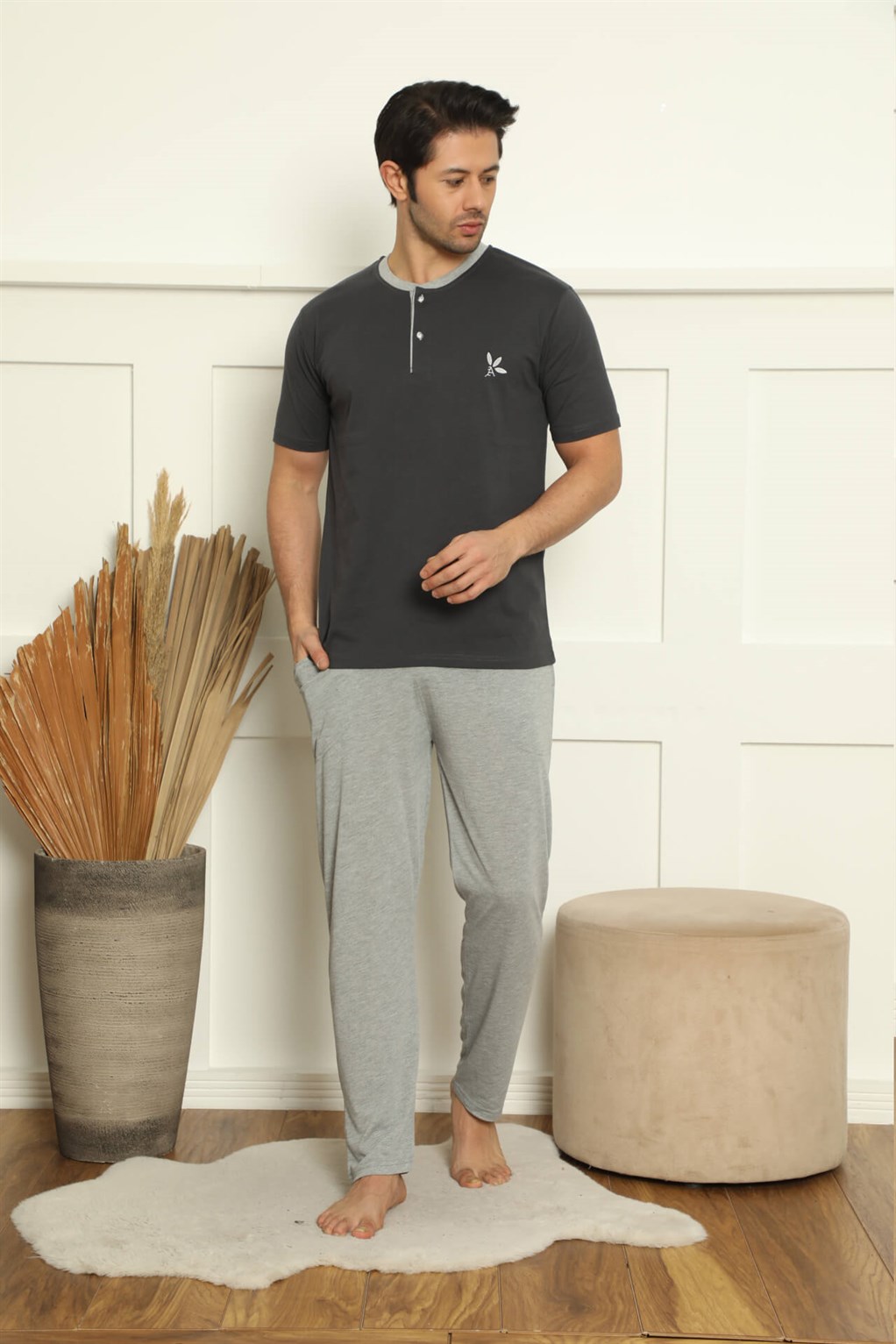 Moda Çizgi Erkek %100 Pamuk Cepli 3'lü Pijama Takımı 6783