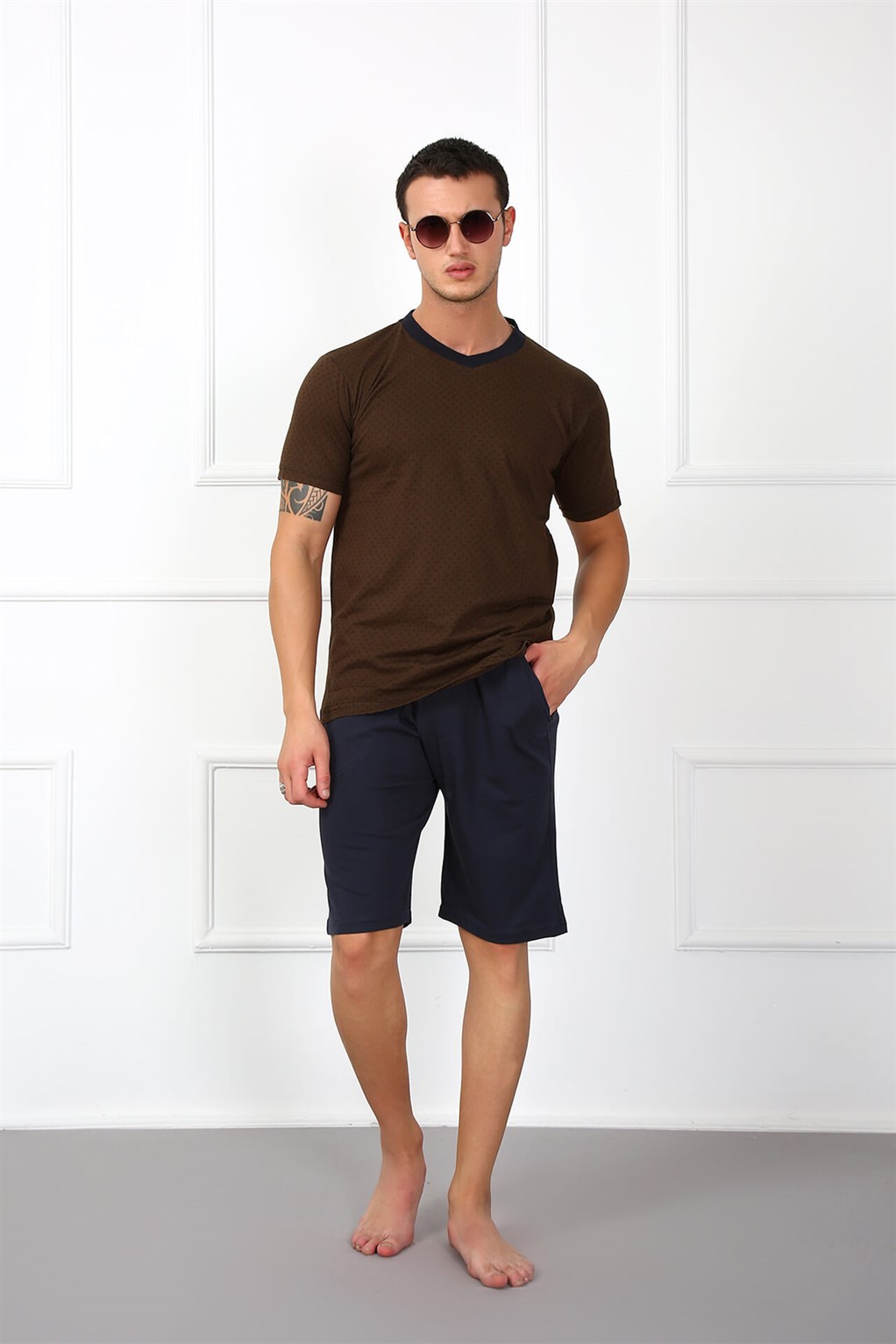 Moda Çizgi Erkek %100 Pamuk Cepli Şortlu Pijama Takım