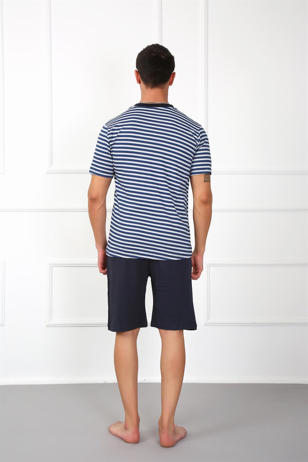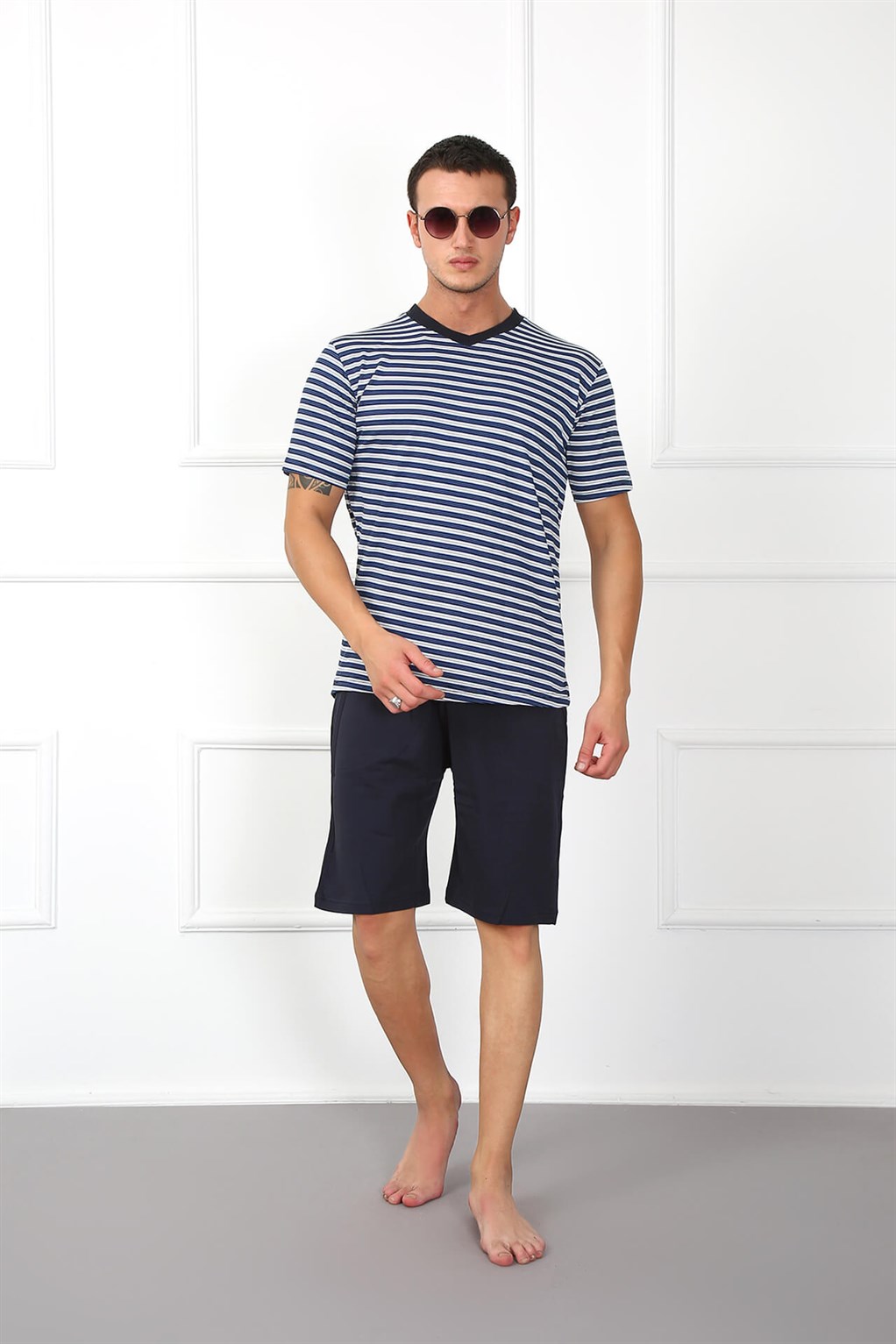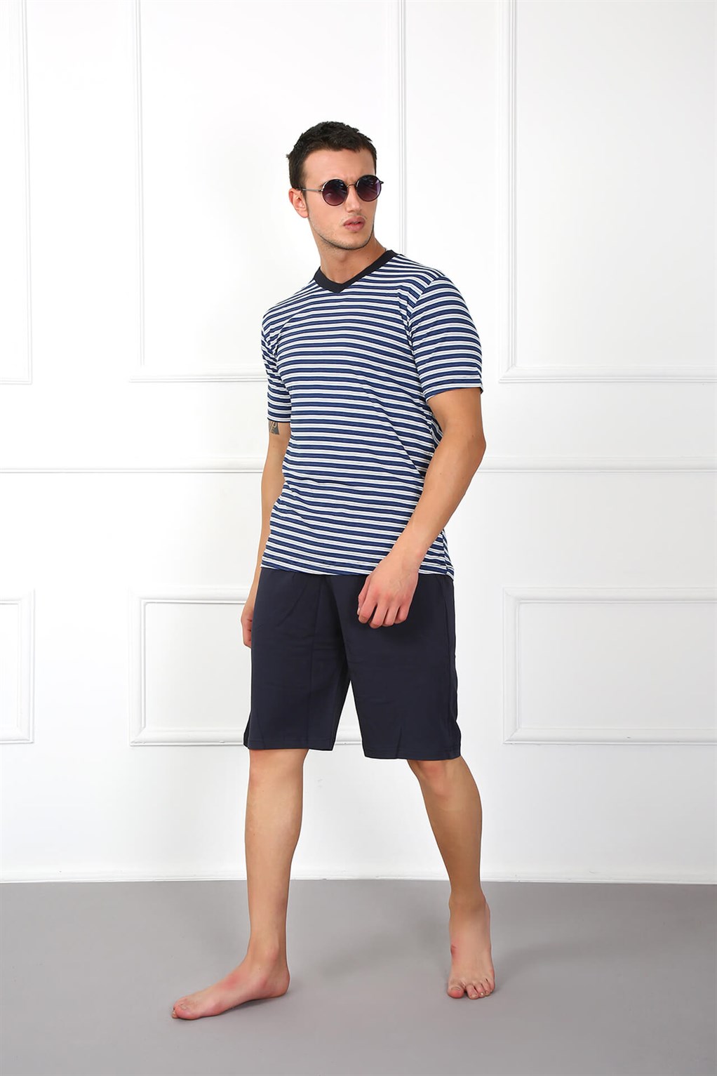 Moda Çizgi Erkek %100 Pamuk Cepli Şortlu Pijama Takım