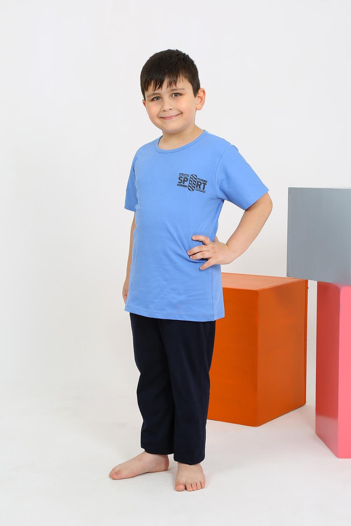 - Üst Parça: Kısa kollu, mavi renkte tişört