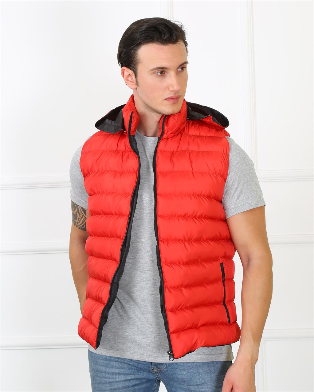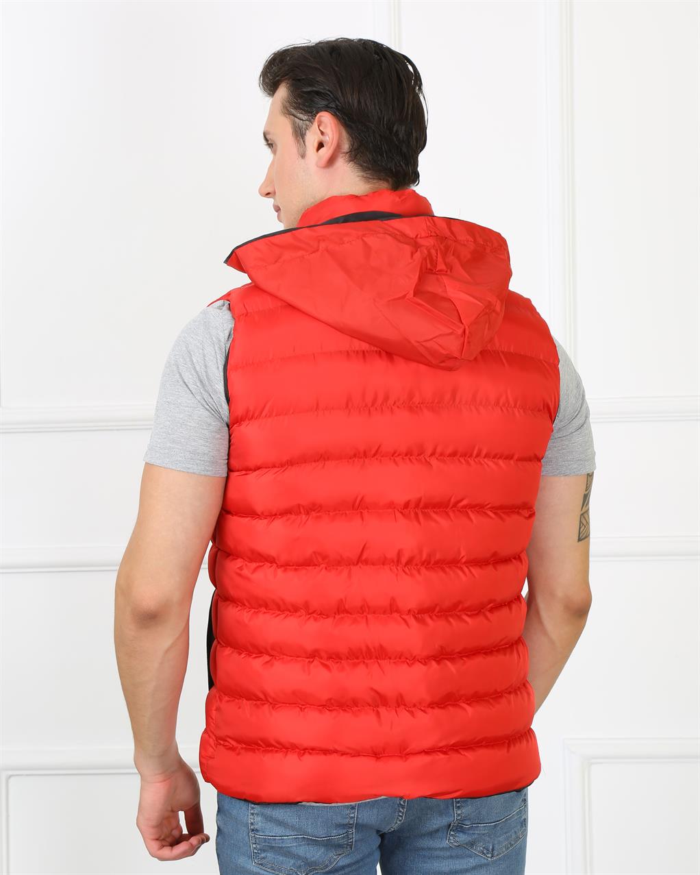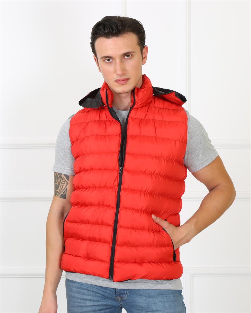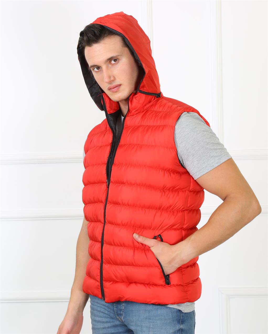 Moda Çizgi Erkek Kapşonlu Kırmızı Şişme Yelek 75100