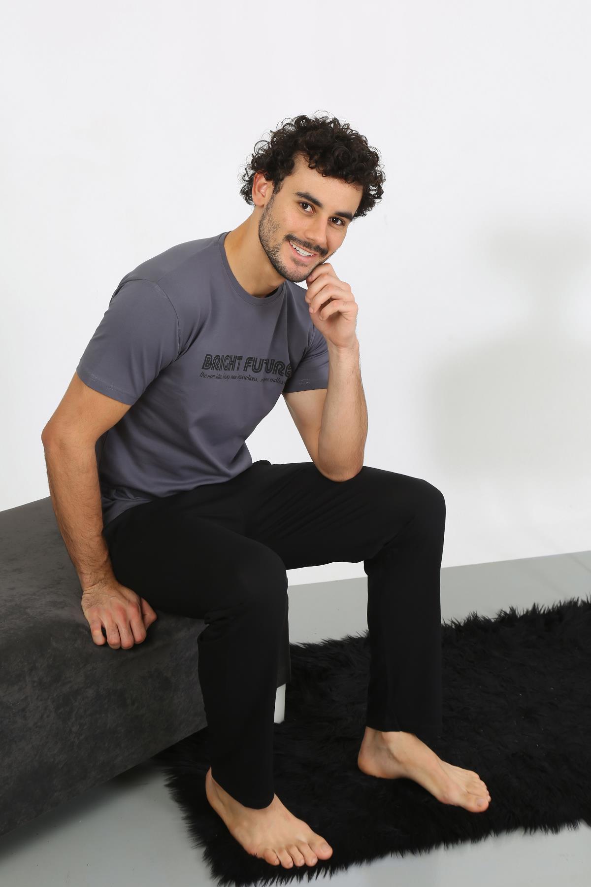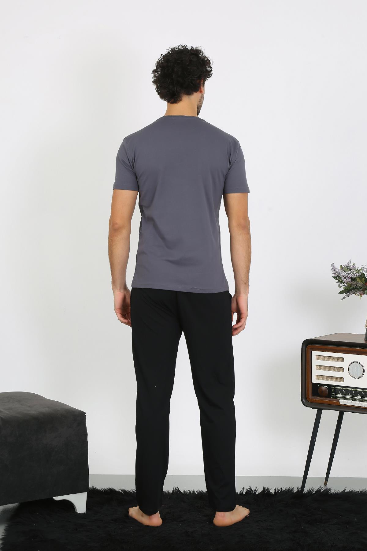 moda çizgi Erkek %100 Pamuk Cepli Kısa Kol Pijama Takımı