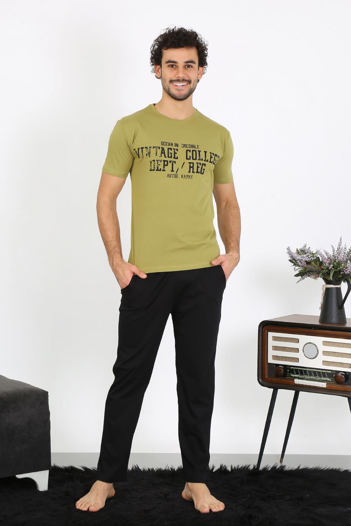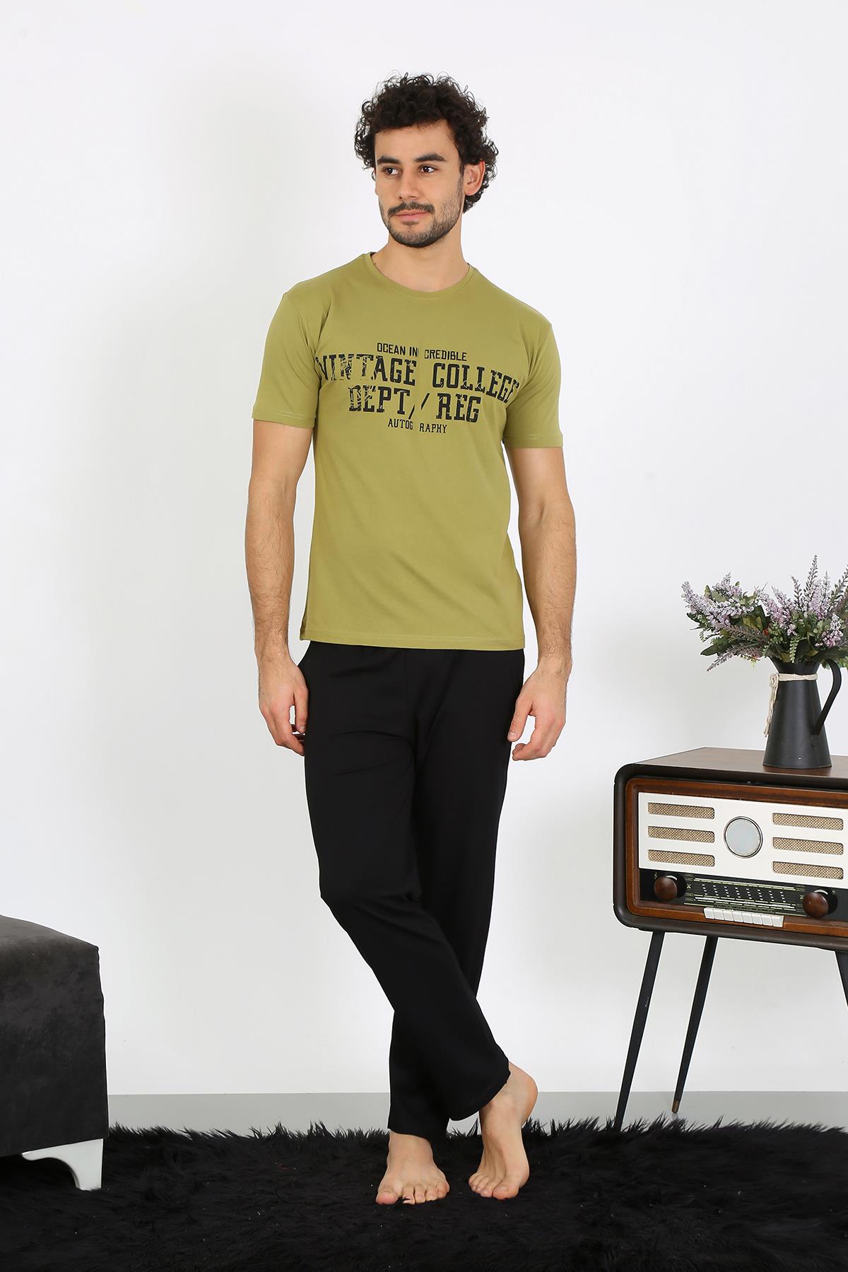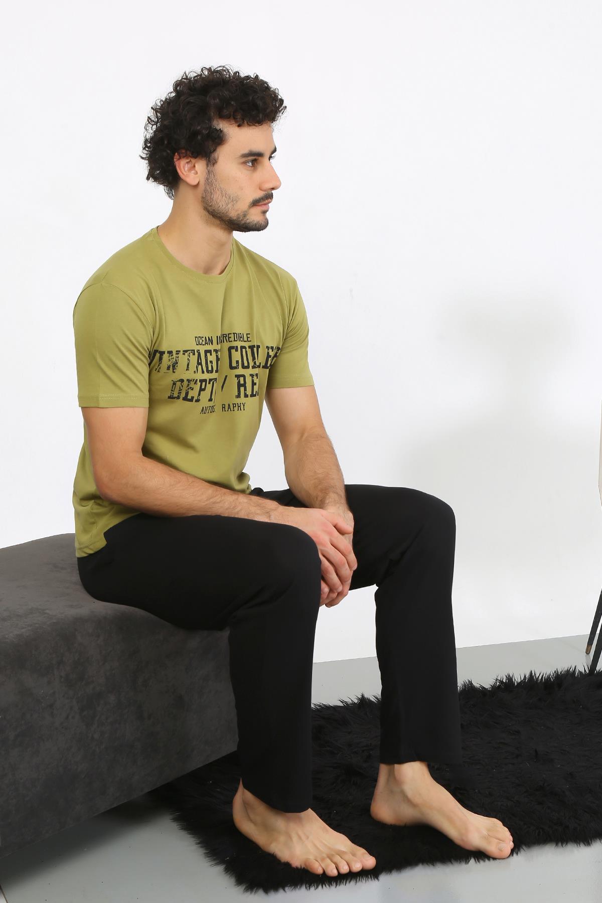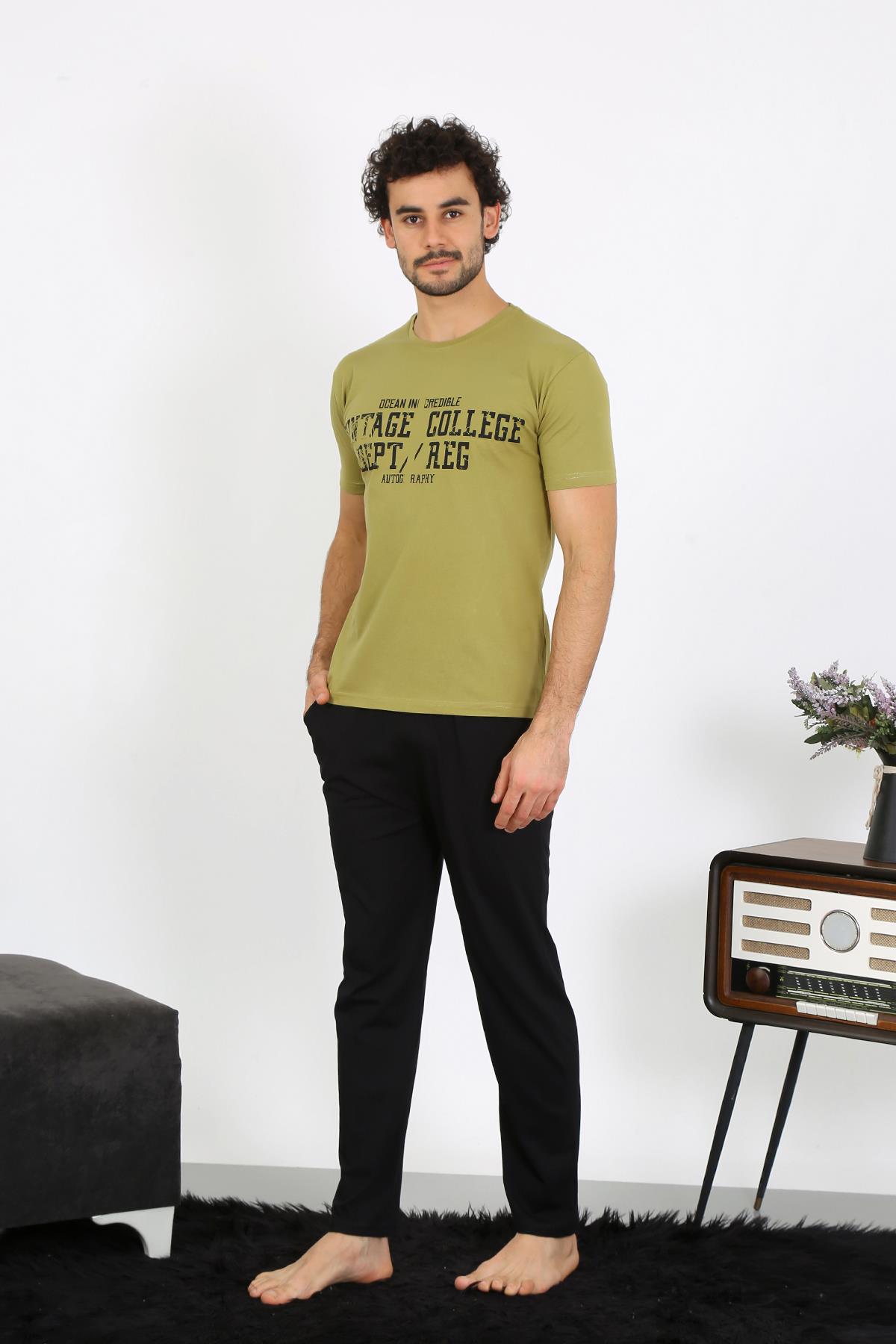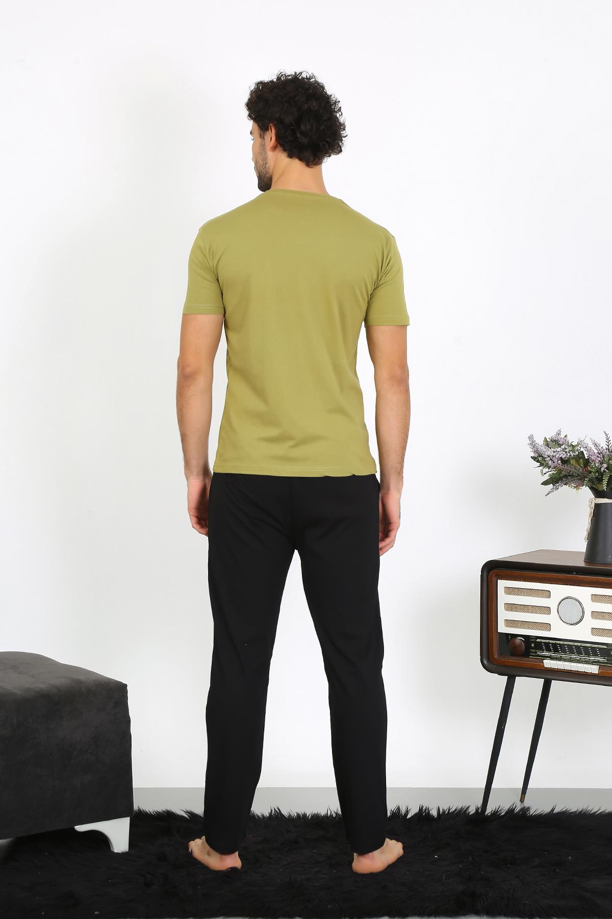 moda çizgi Erkek Kısa Kol Penye Hardal Pijama Takımı 6846