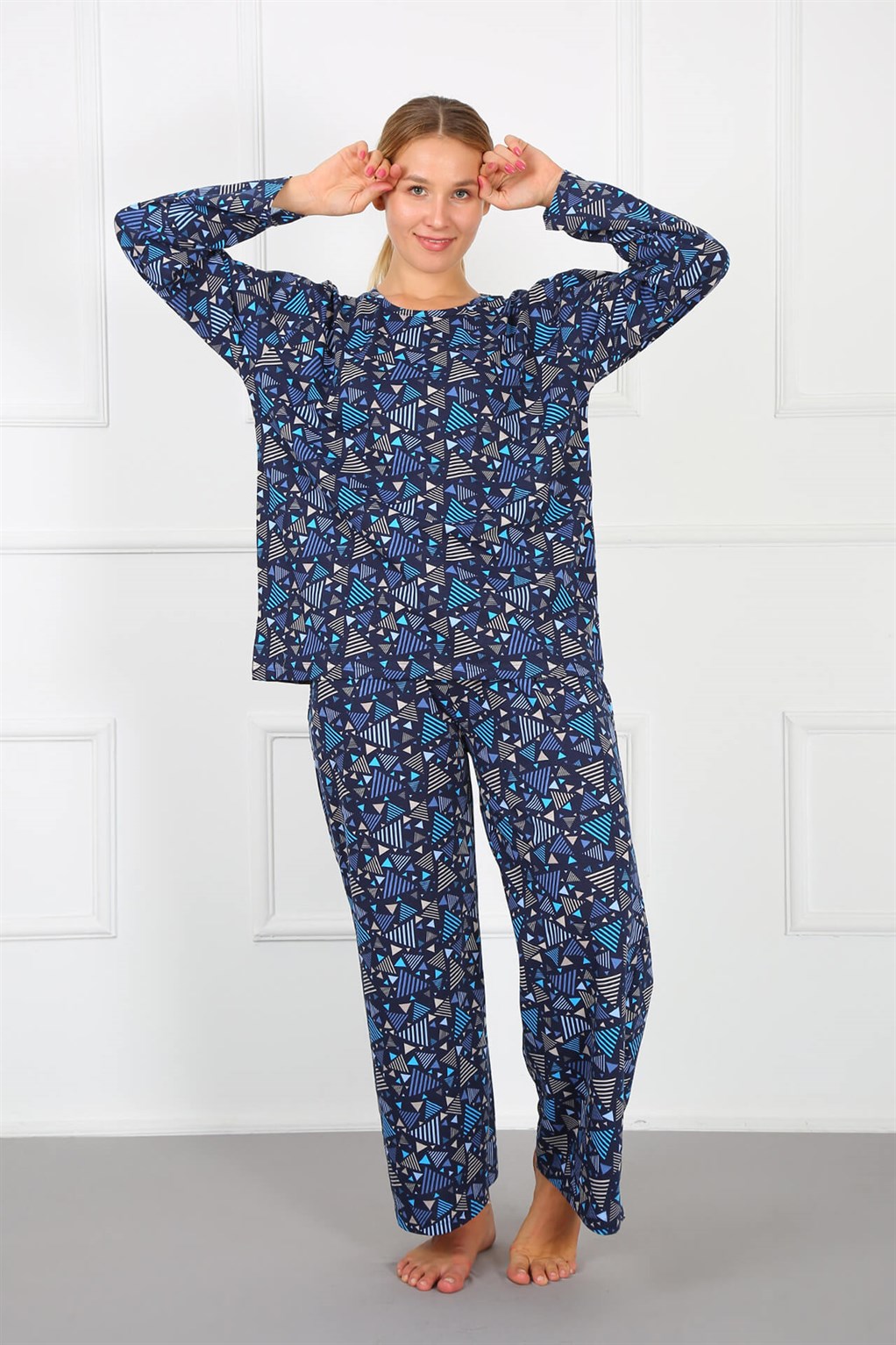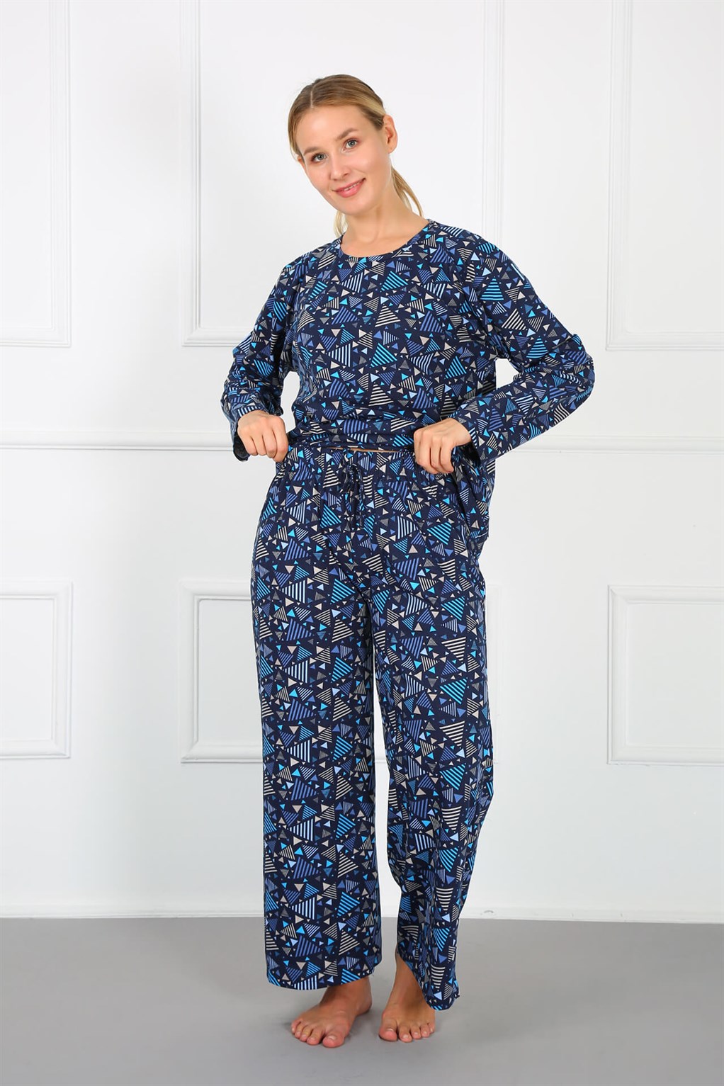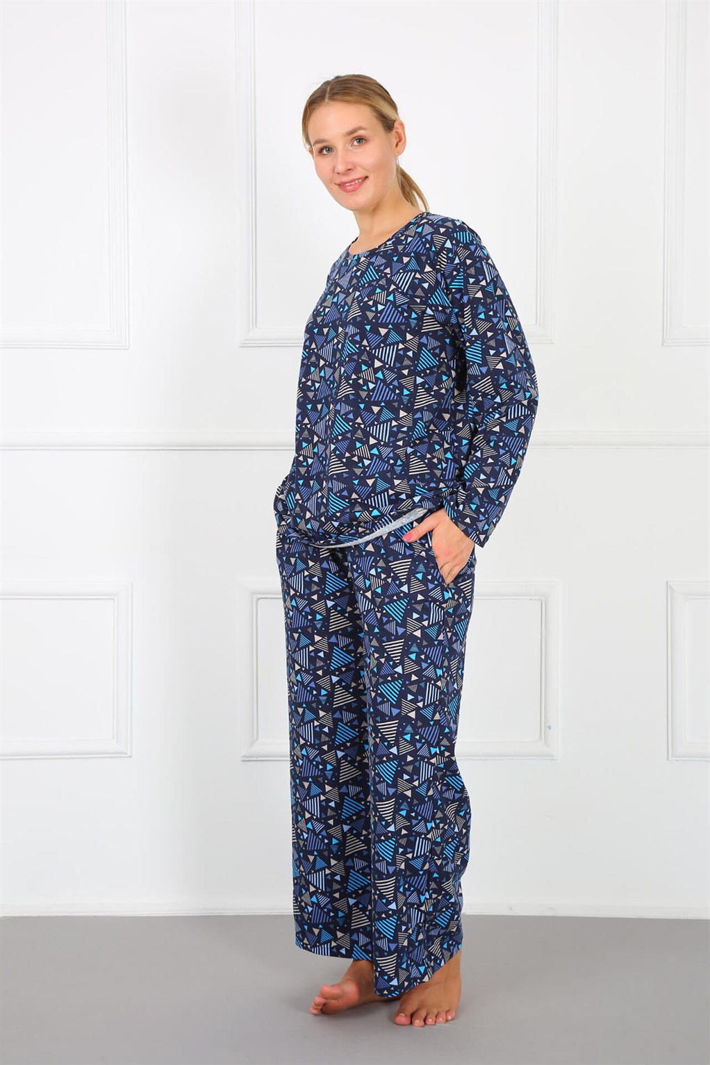 Moda Çizgi Kadın %100 Pamuk Büyük Beden Pijama Takım 202172