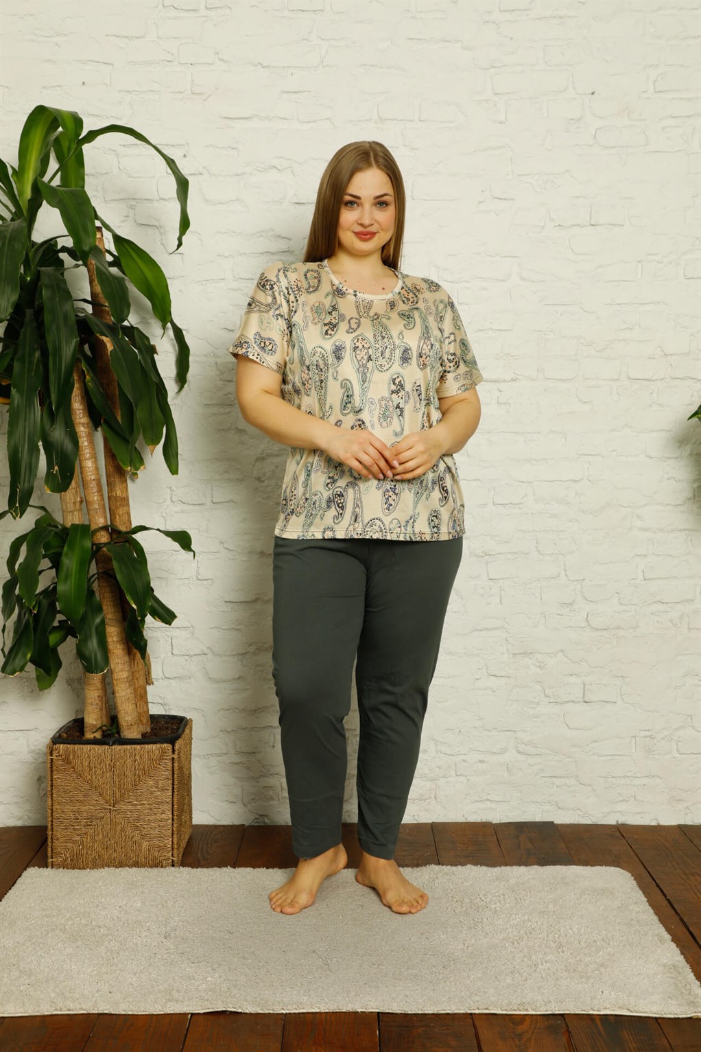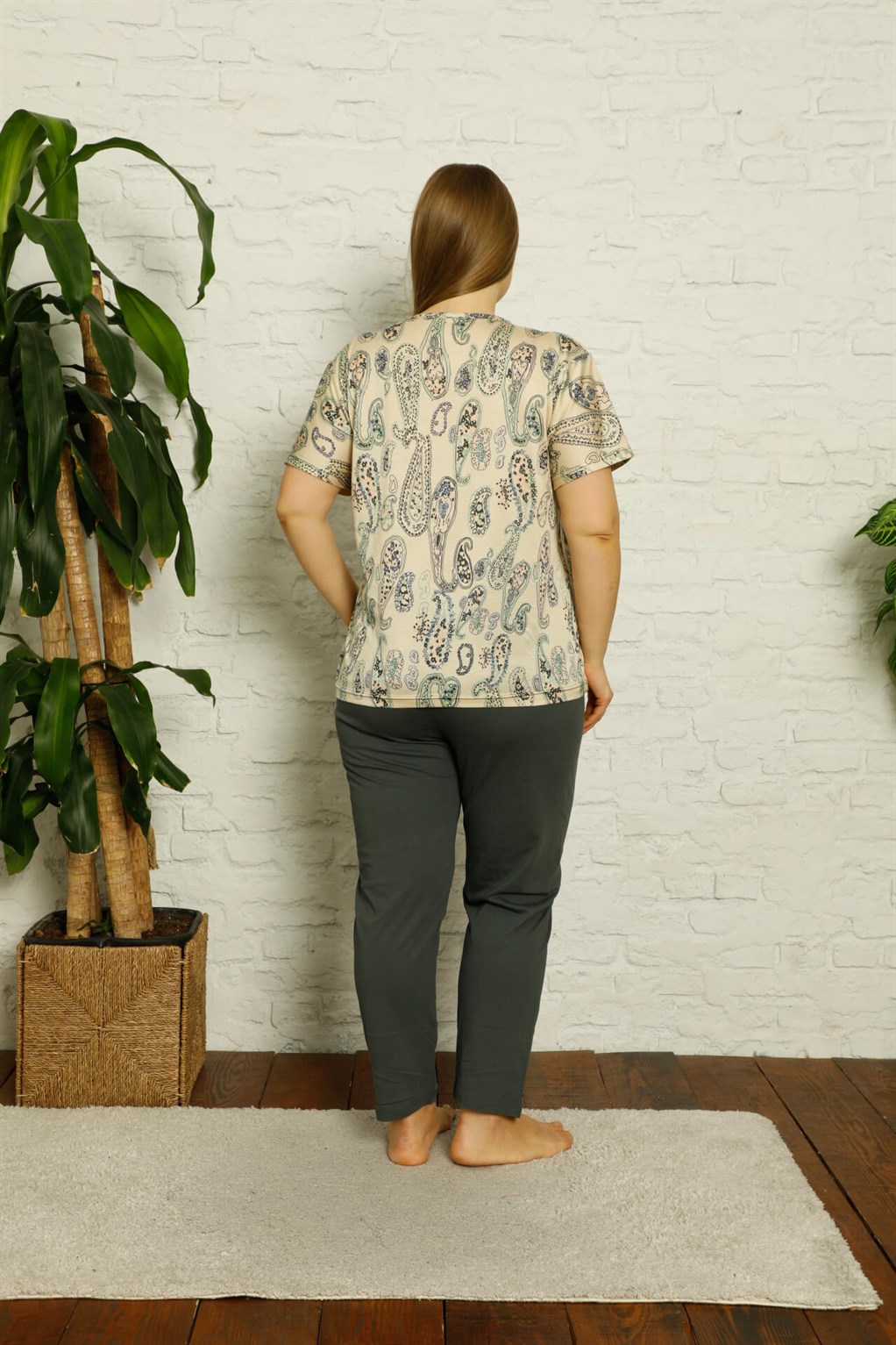 Moda Çizgi Kadın %100 Pamuk Cepli Kısa Kol Büyük Beden Pijama Takım
