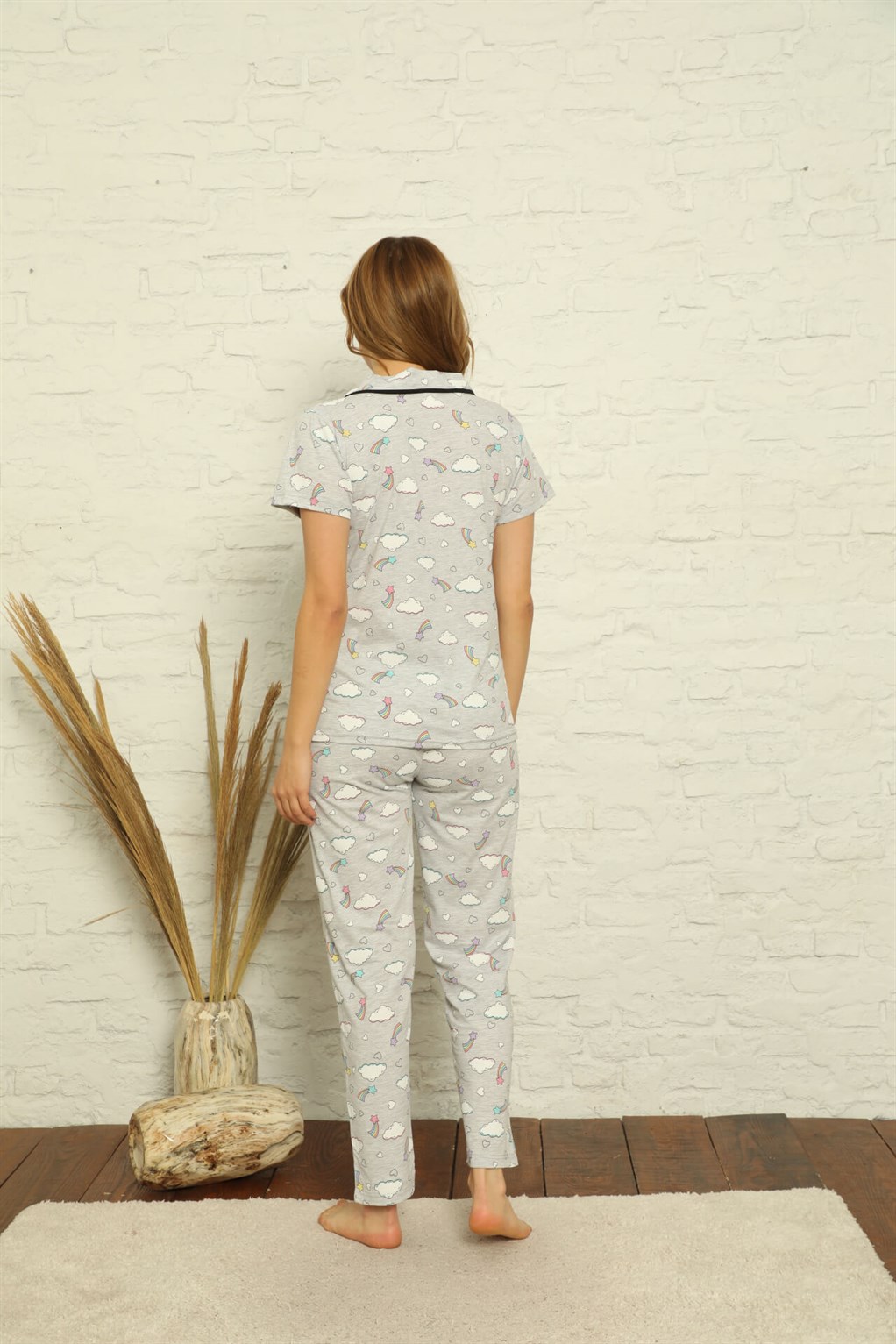 Moda Çizgi Kadın %100 Pamuk Önden Düğmeli Kısa Kol Pijama Takım