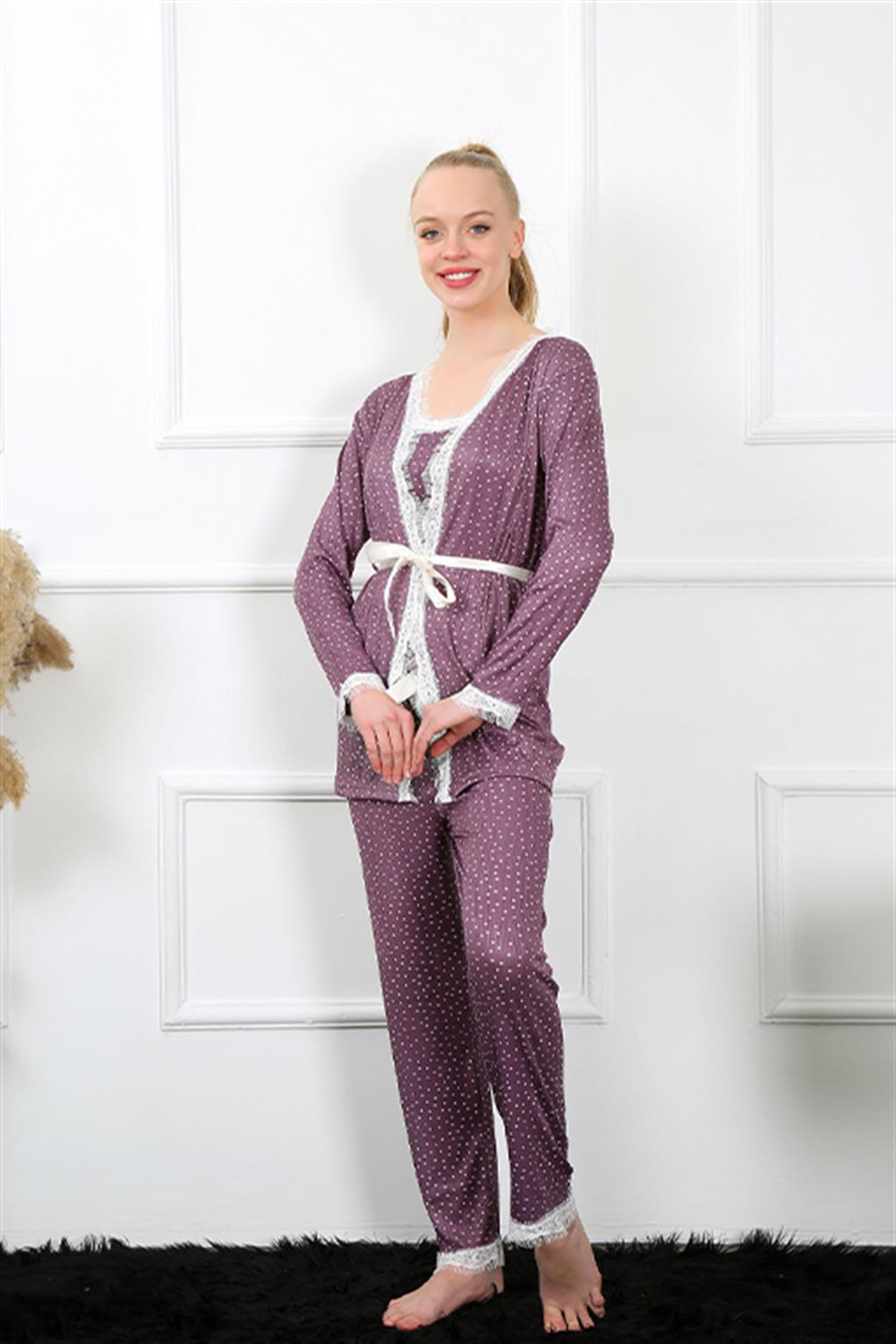 Moda Çizgi Kadın 3'lü Sabahlık Pijama Takım