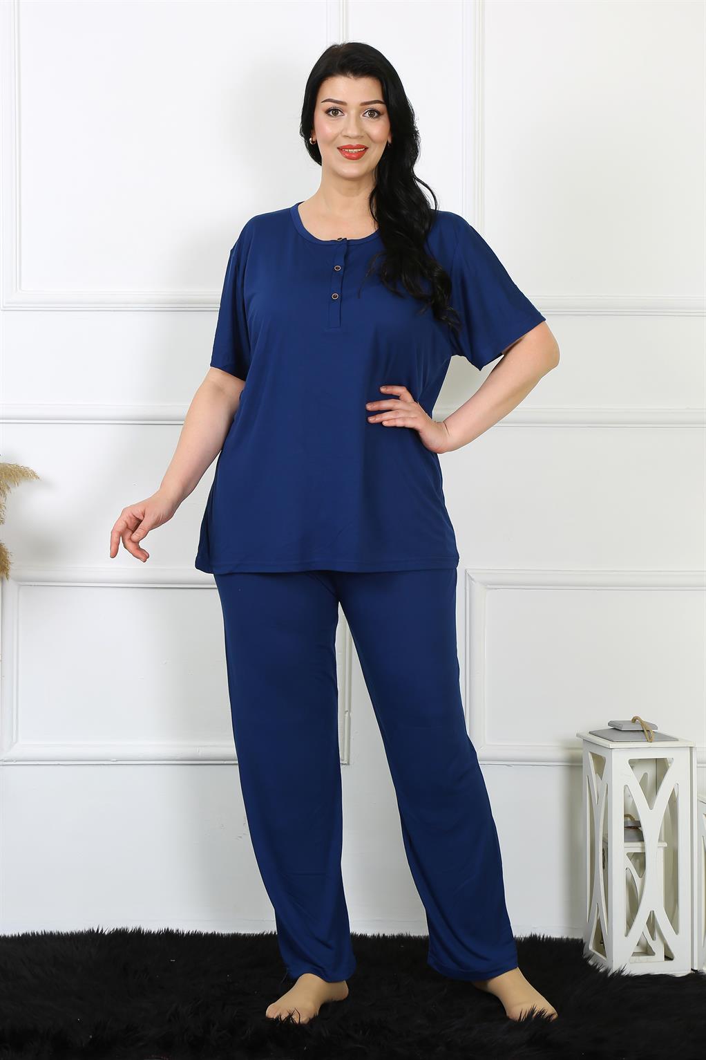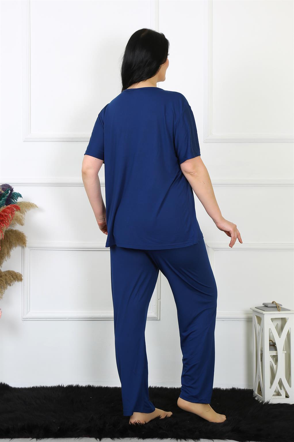 Moda Çizgi Kadın Kısa Kol Büyük Beden Pijama Takım