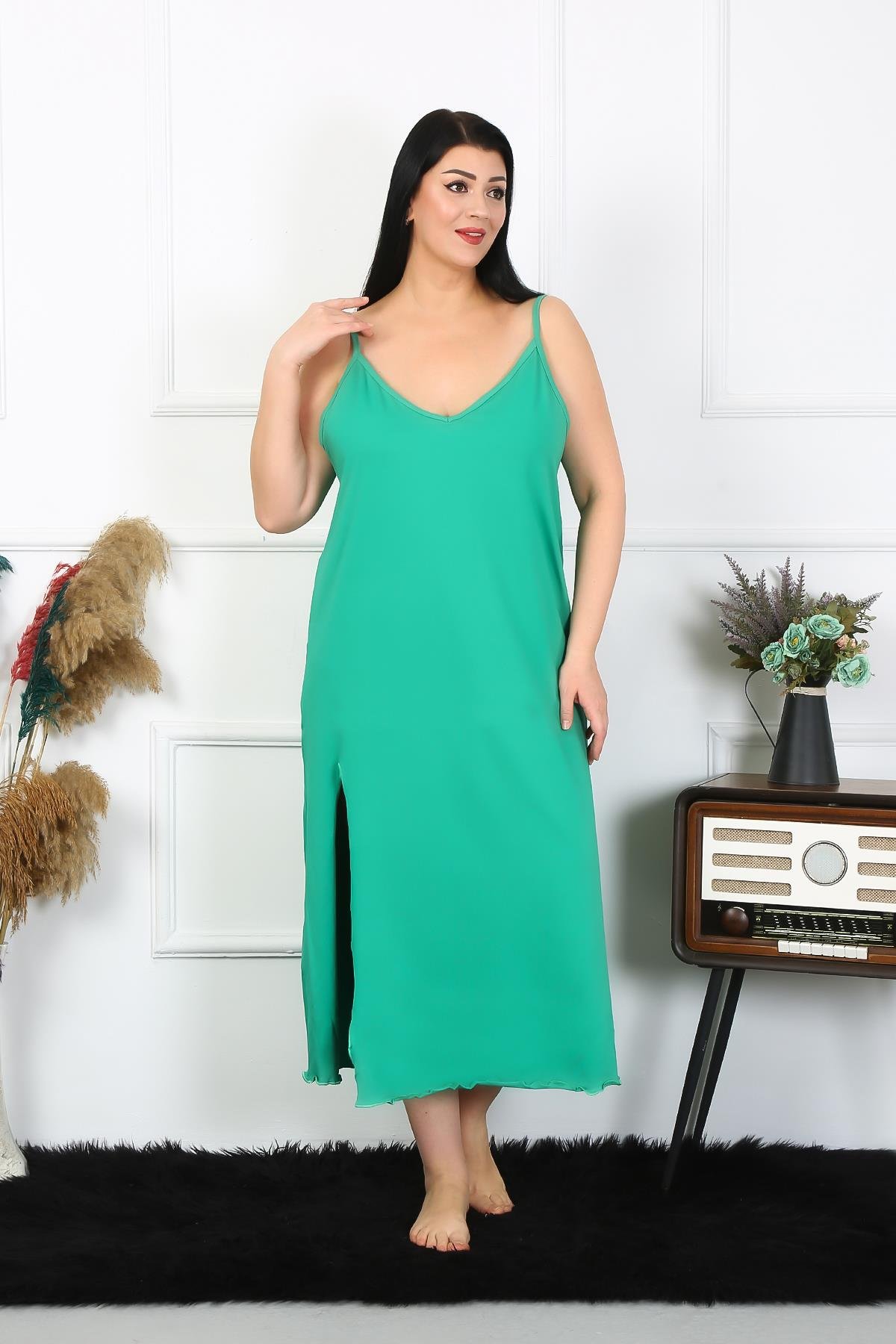 Moda Çizgi İp Askılı Penye Uzun Gecelik