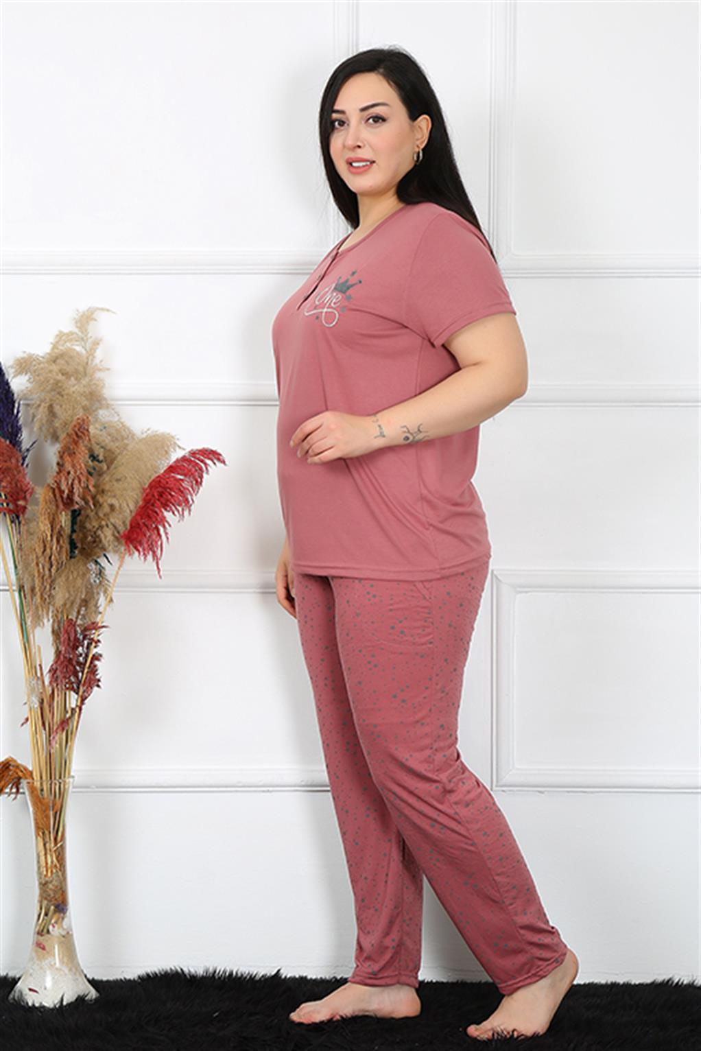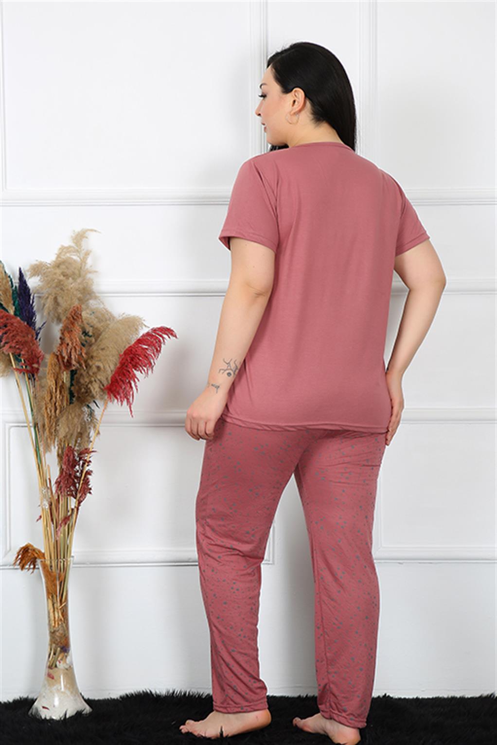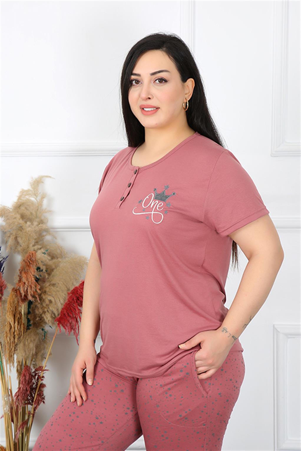 Moda Çizgi Kadın Kısa Kol Büyük Beden Pijama Takım