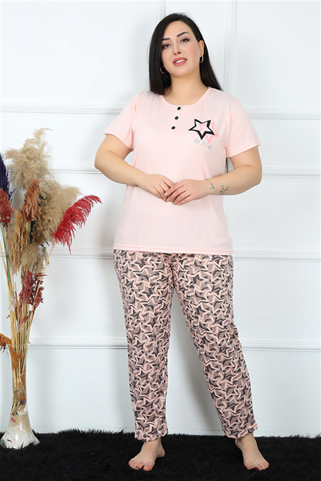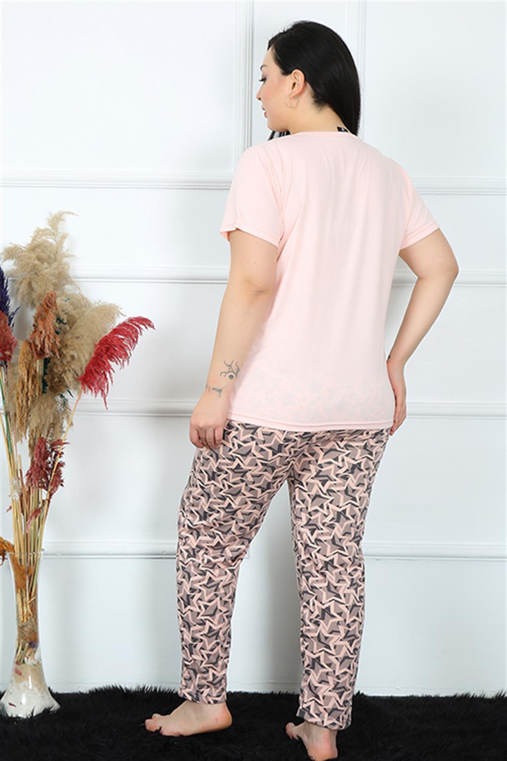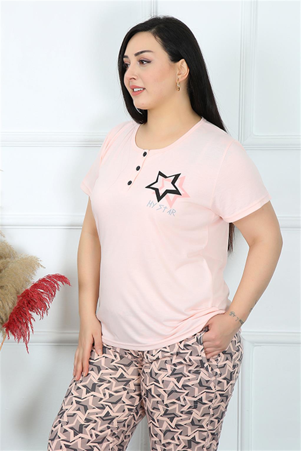 Moda Çizgi Kadın Kısa Kol Büyük Beden Pijama Takım