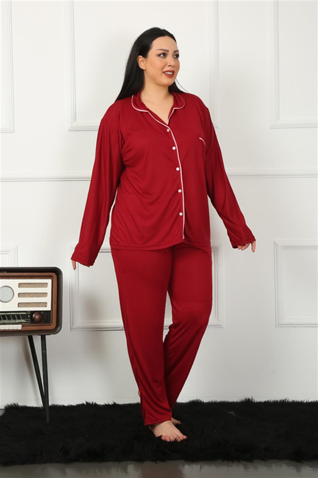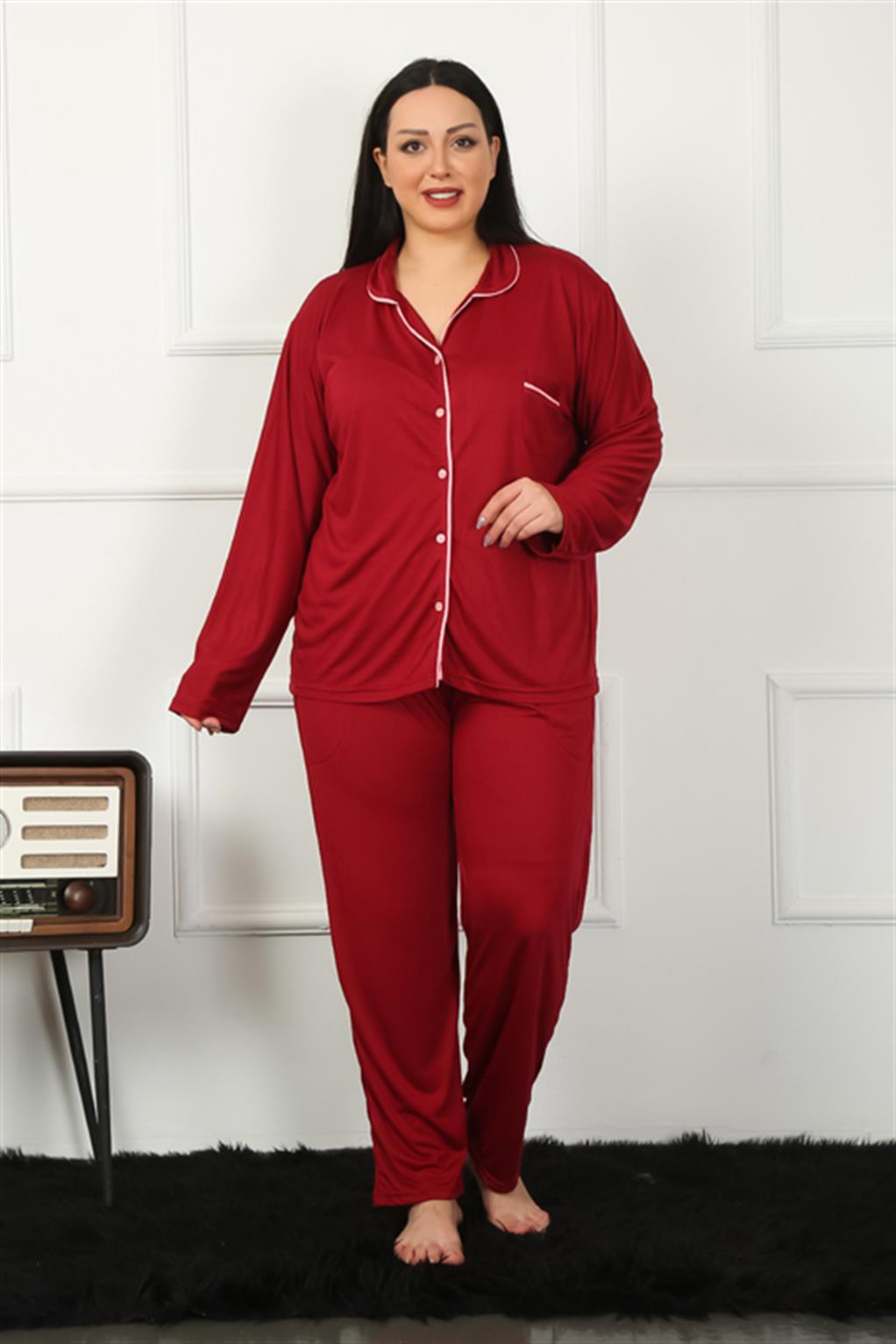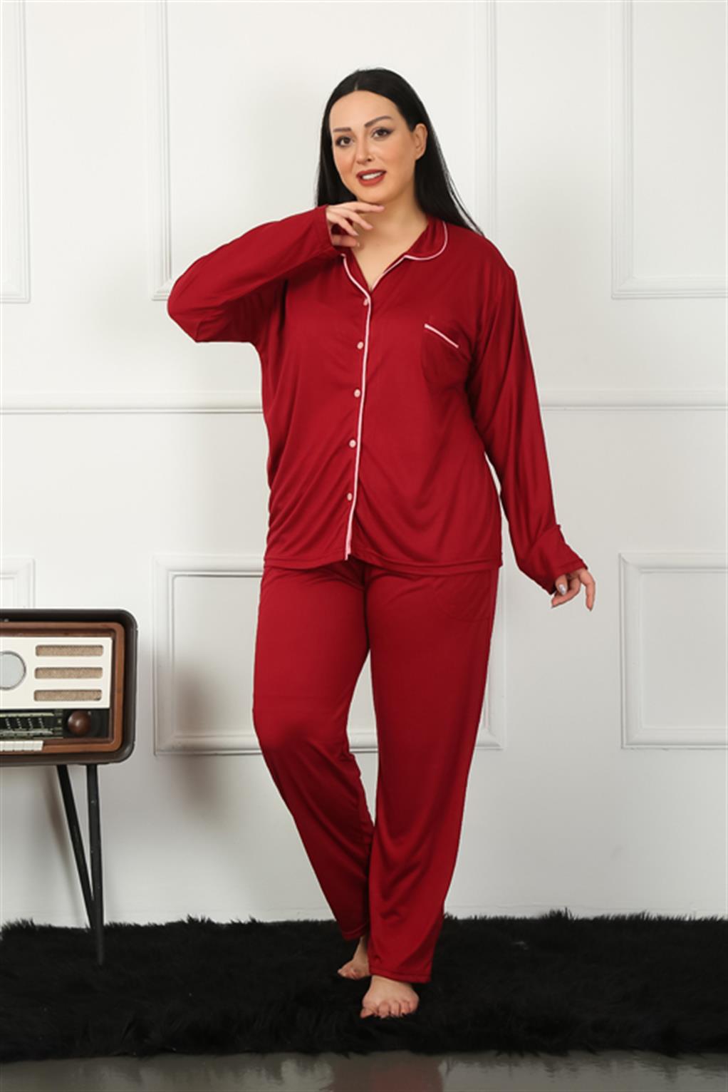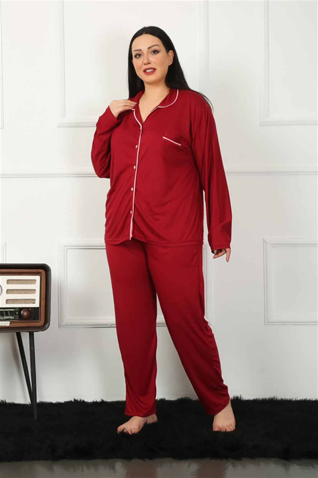 Kadın Pamuklu Cepli Uzun Kol Büyük Beden Pijama Takımı