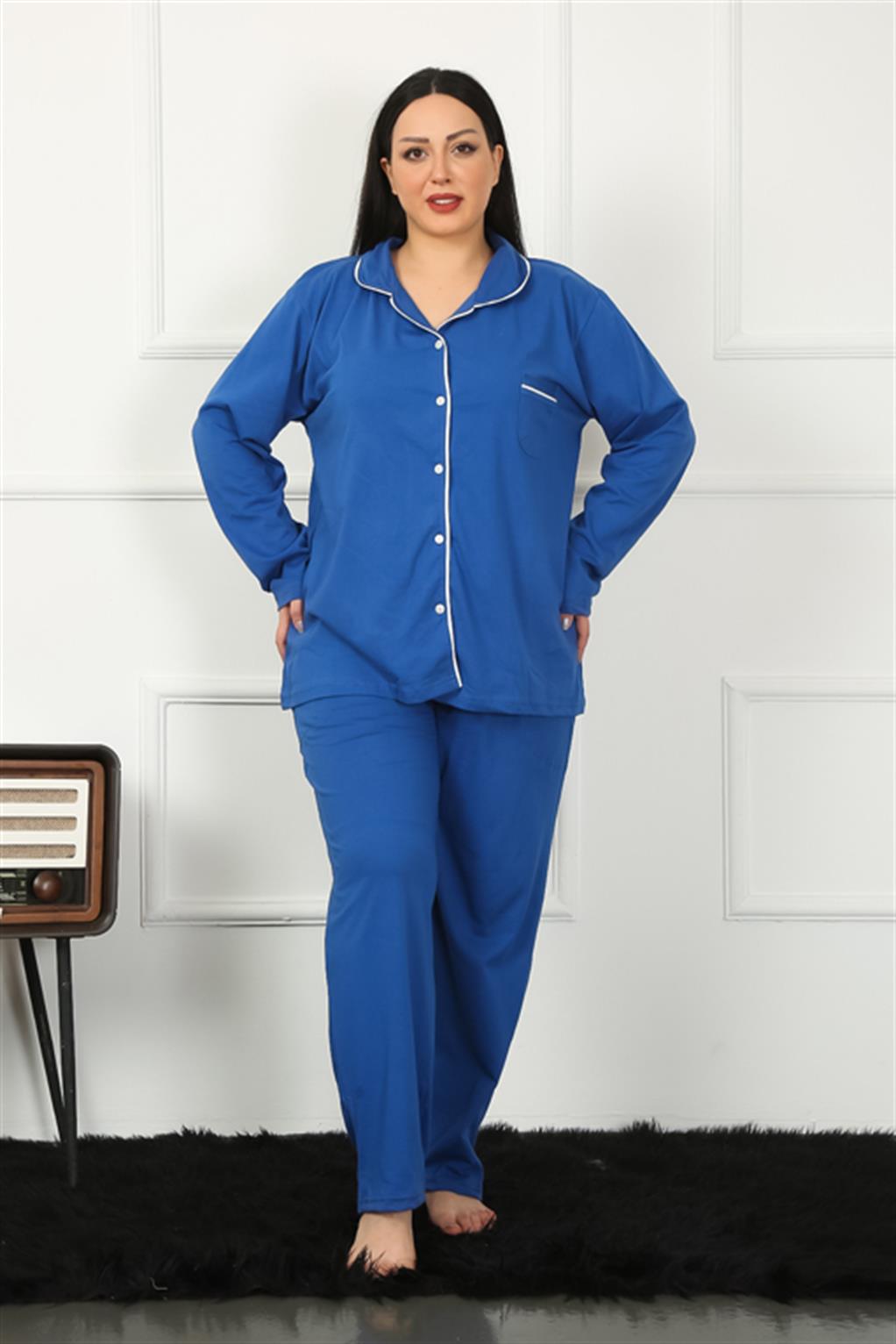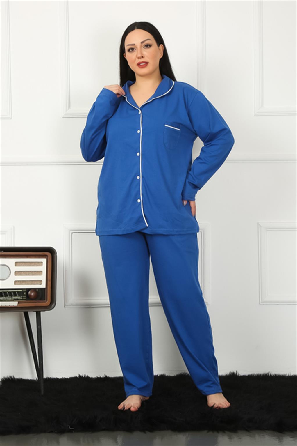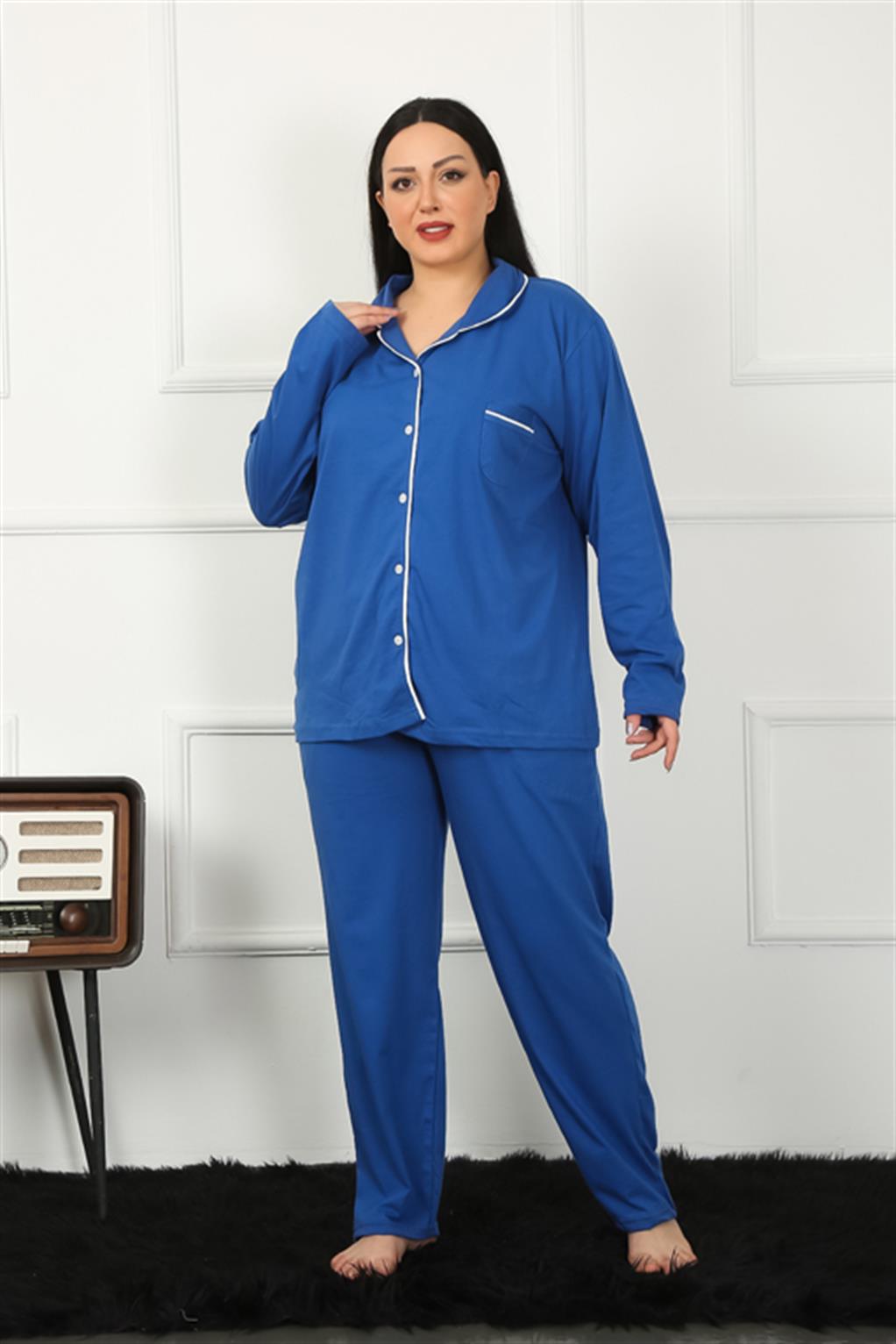 Kadın Pamuklu Cepli Uzun Kol Büyük Beden Pijama Takımı
