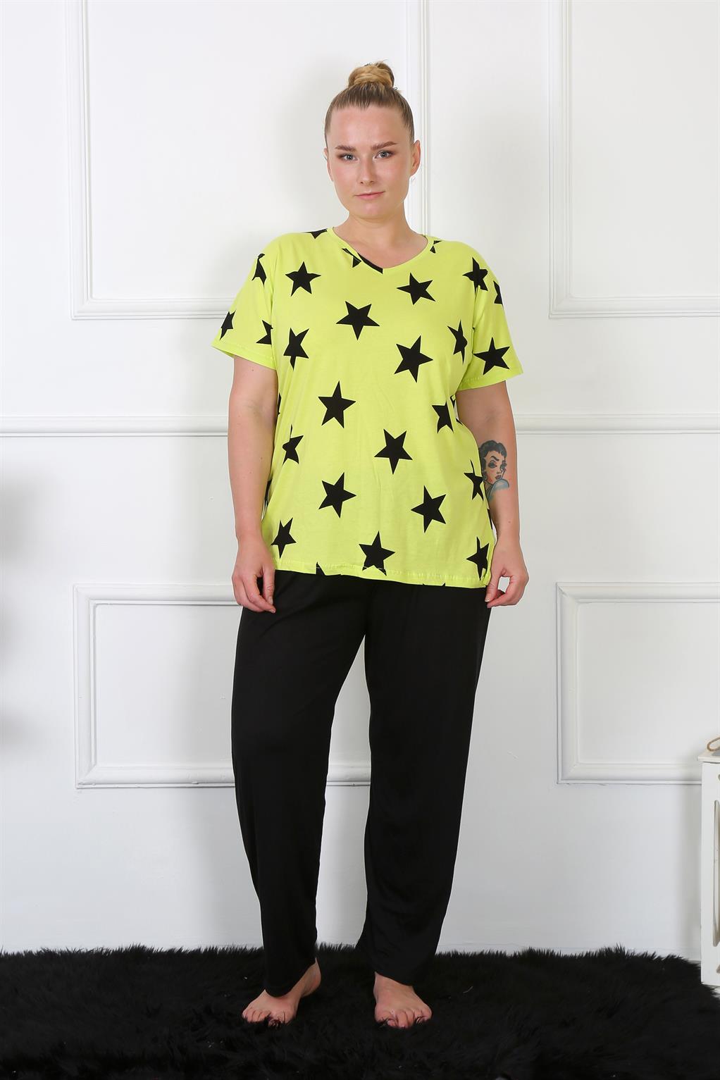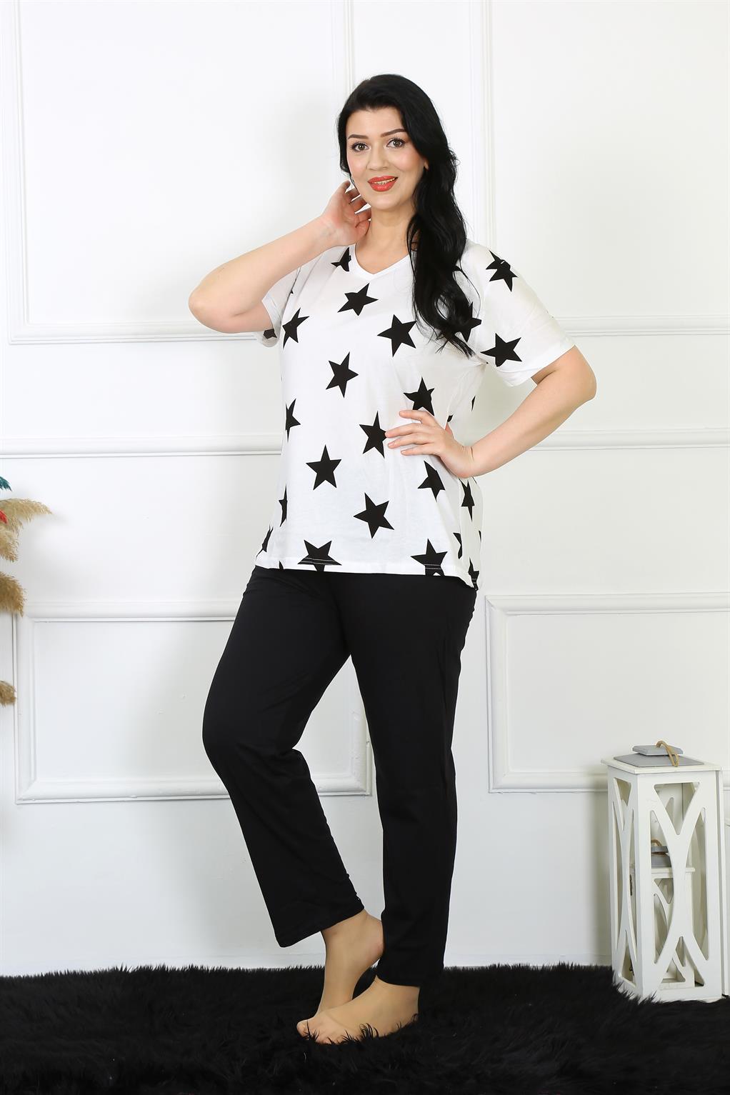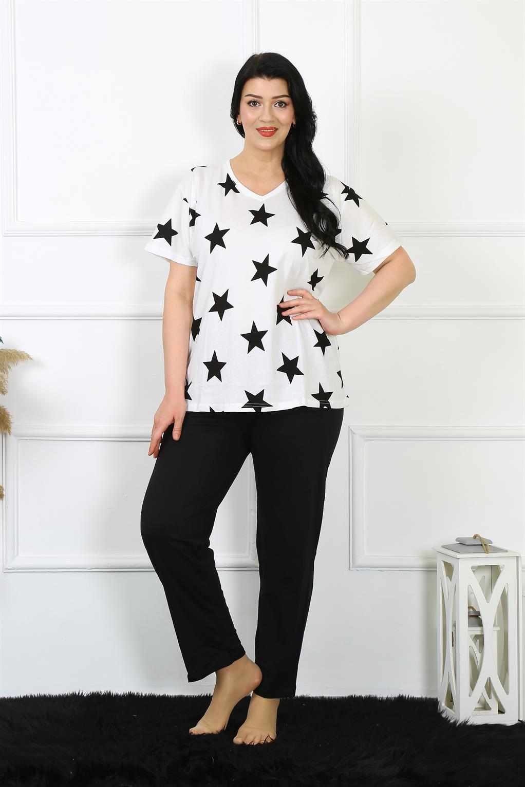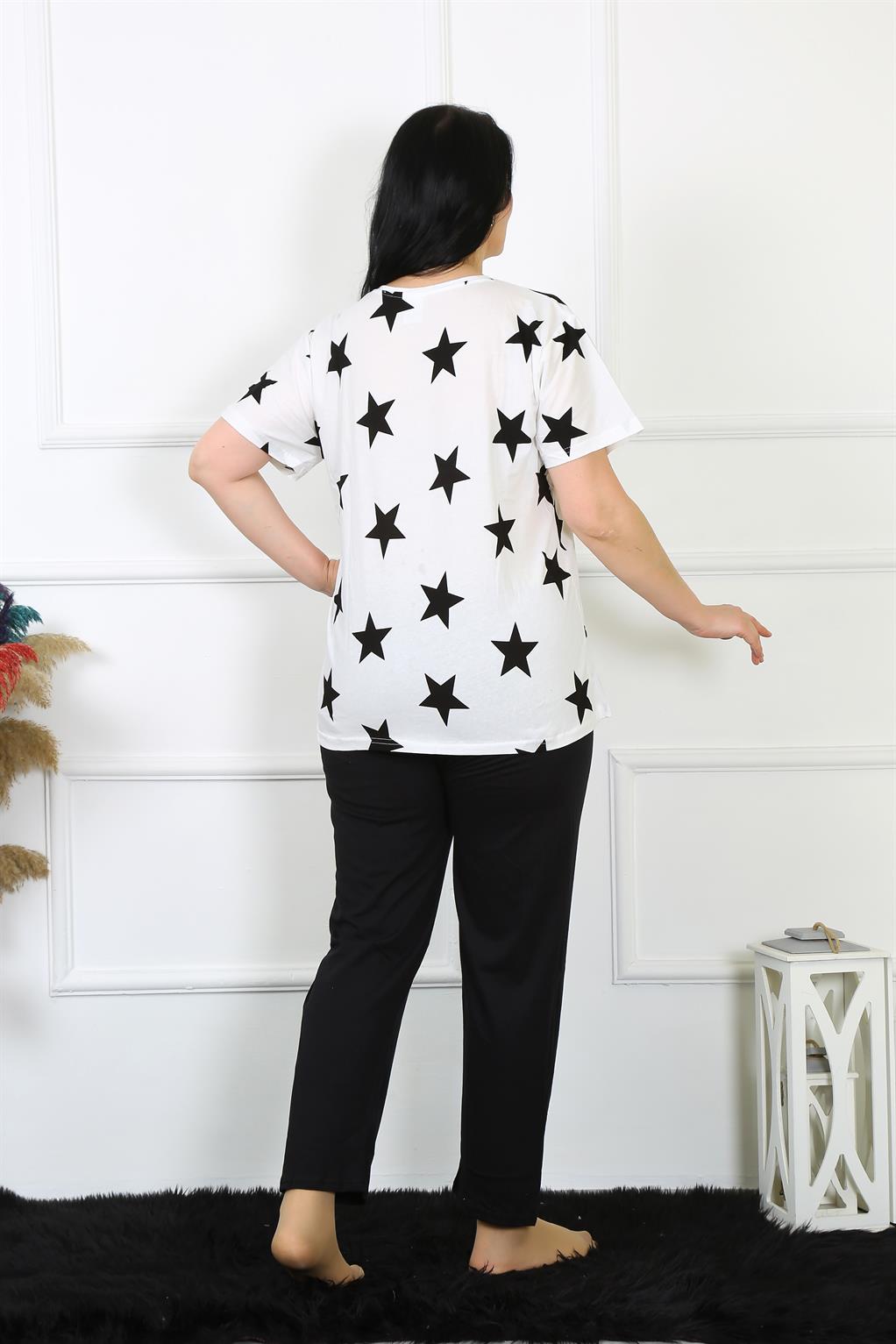 Moda Çizgi Kadın Kısa Kol Büyük Beden Pijama Takım