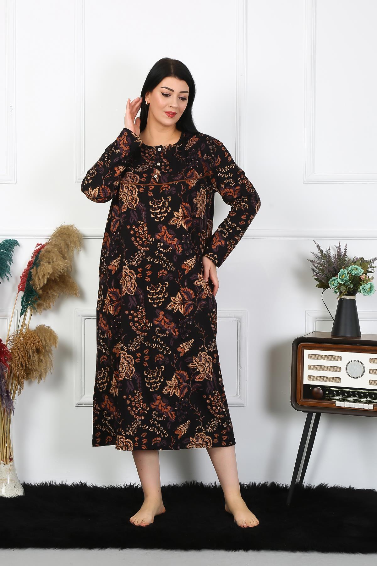 Artmodam Kadın Büyük Beden Uzun Kol Siyah Anne Gecelik 1367