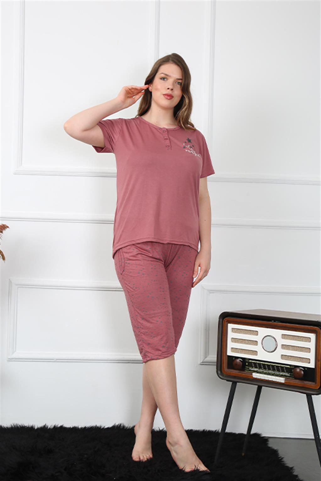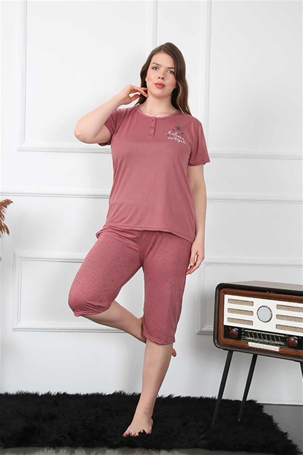 Moda Çizgi Kadın Kapri Büyük Beden Pijama Takım