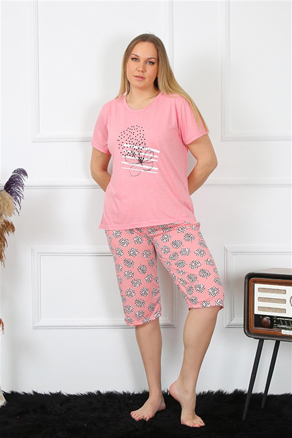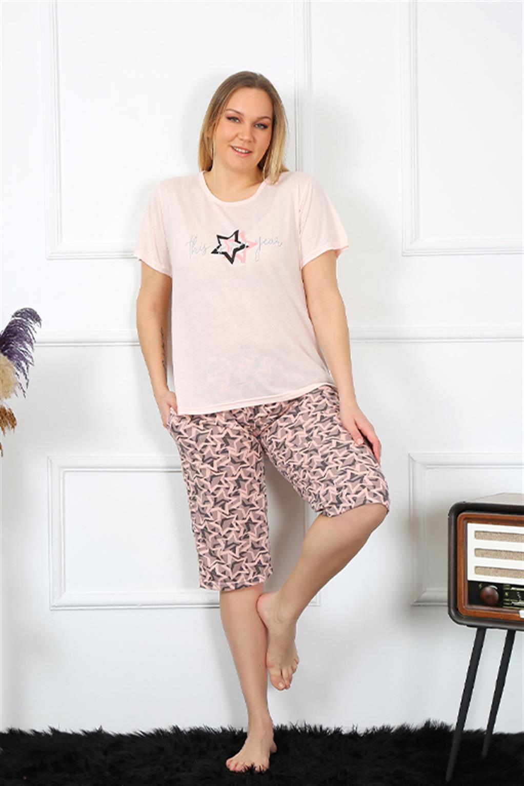 Moda Çizgi Kadın Kapri Büyük Beden Pijama Takım
