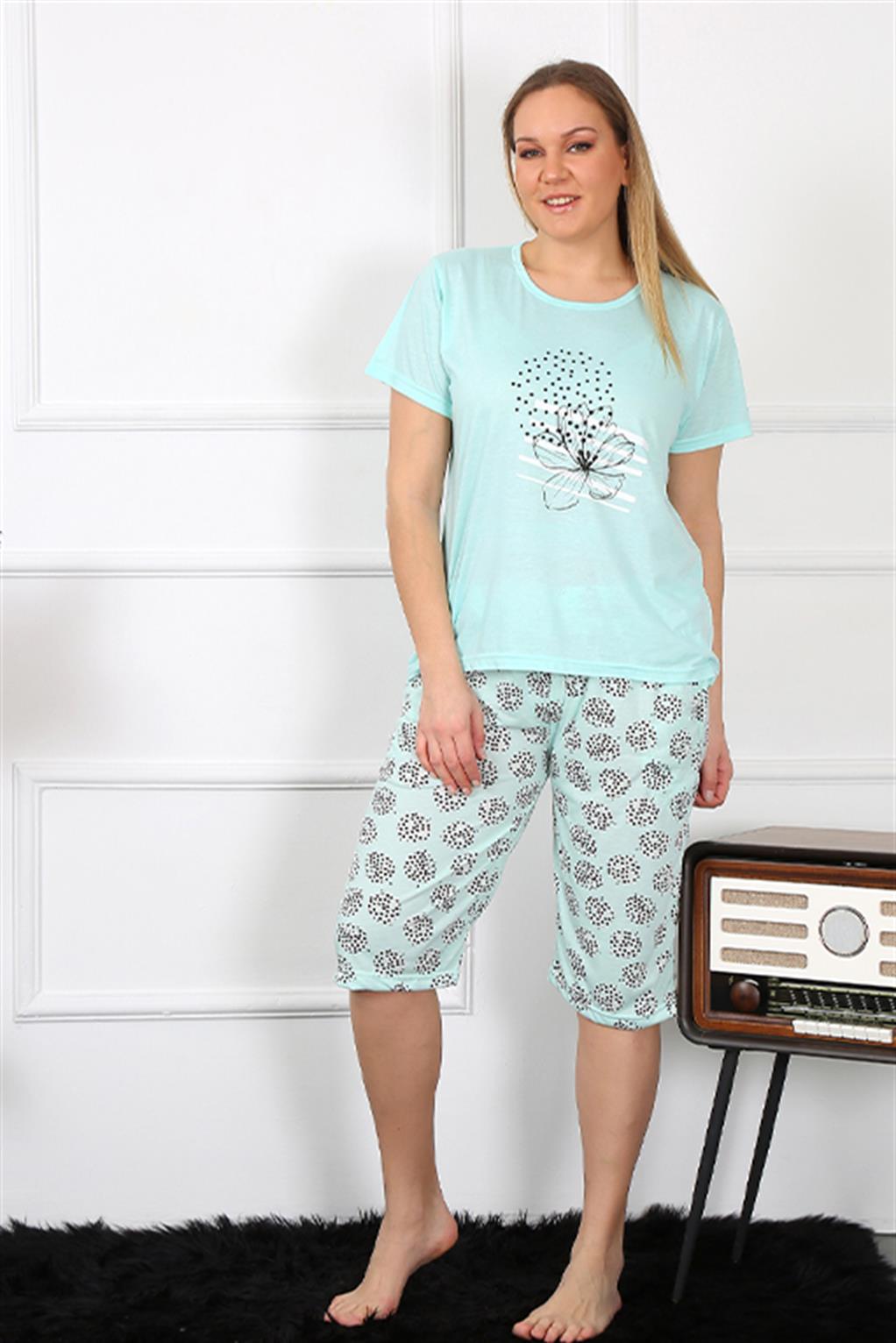 Moda Çizgi Kadın Kapri Büyük Beden Pijama Takım