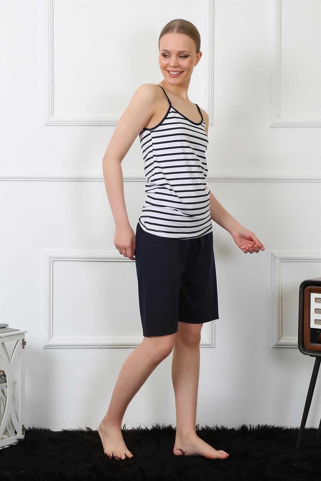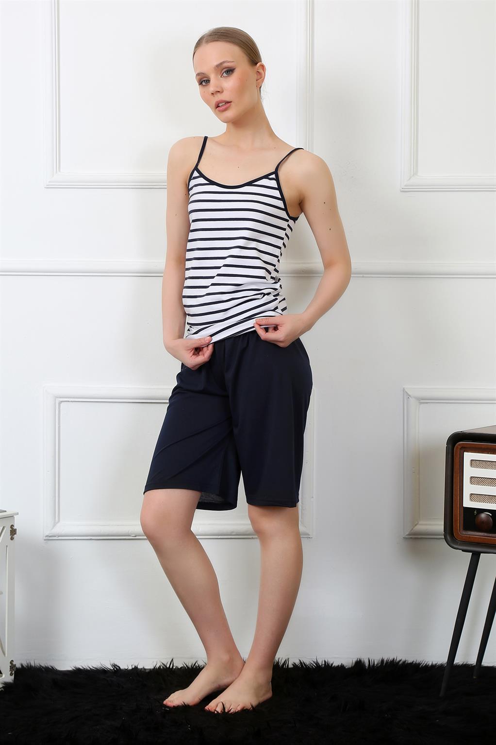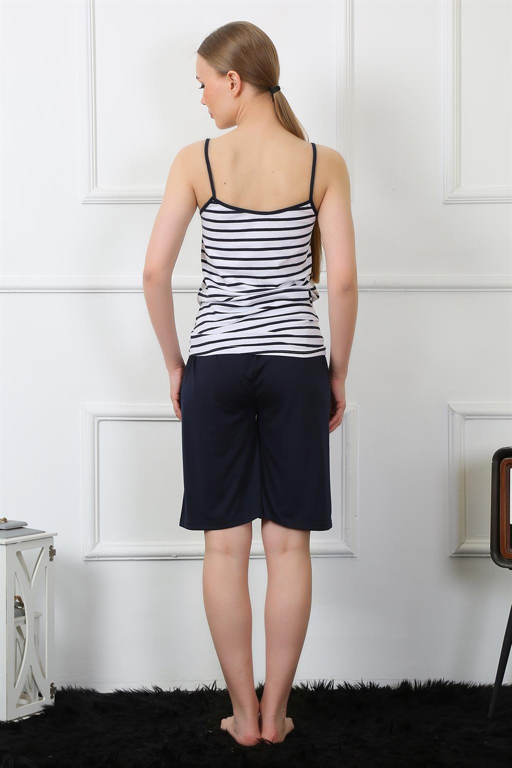 Moda Çizgi Kadın İp Askılı Kapri Takım 3606