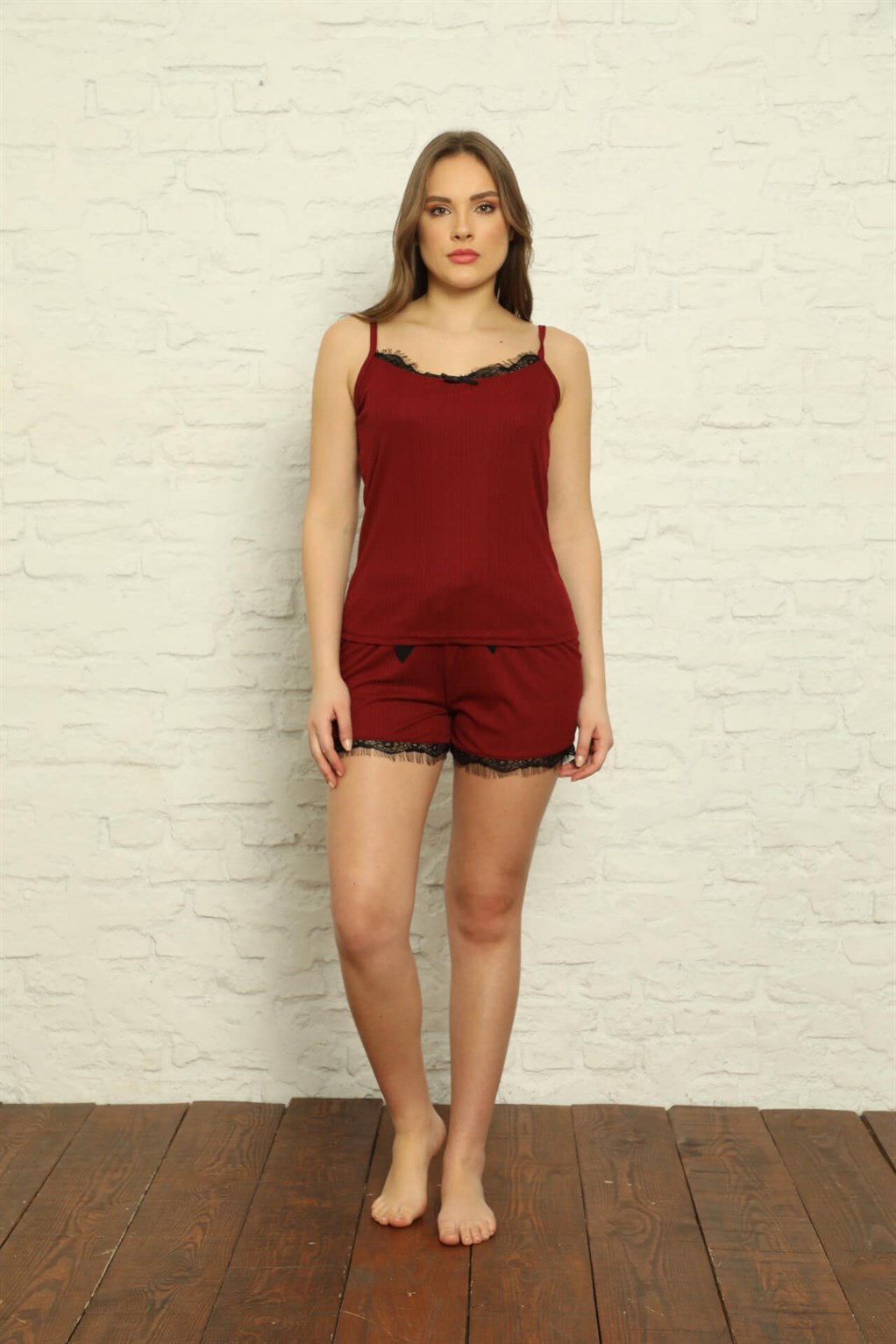 Moda Çizgi Kadın İp Askılı Şortlu Pijama Takım
