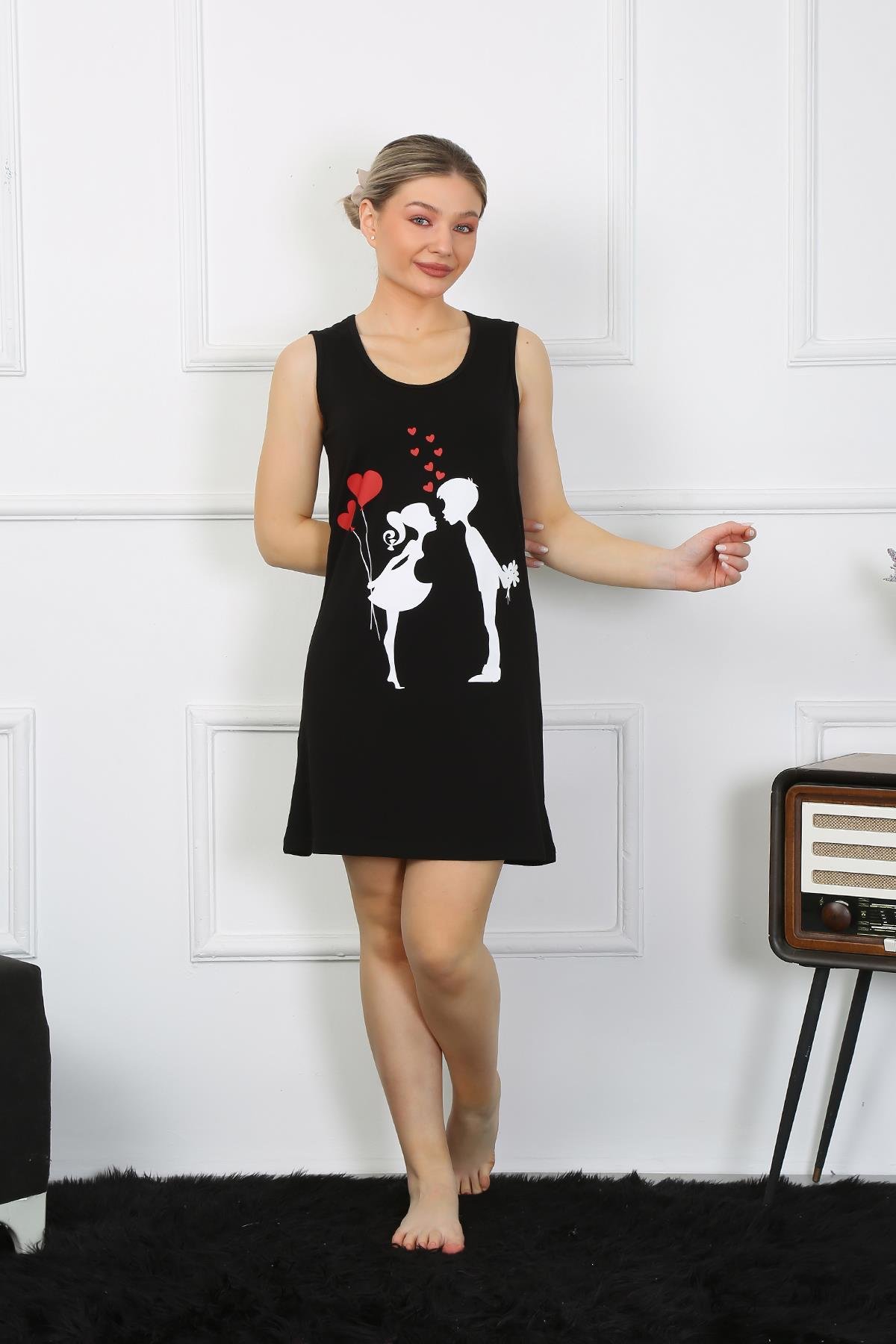 Artmodam Kadın Kalın Askılı Penye Diz Üstü Siyah Gecelik 11310