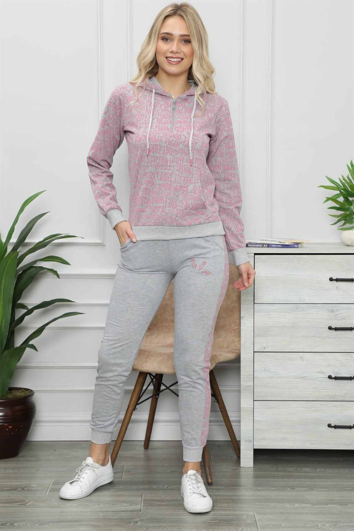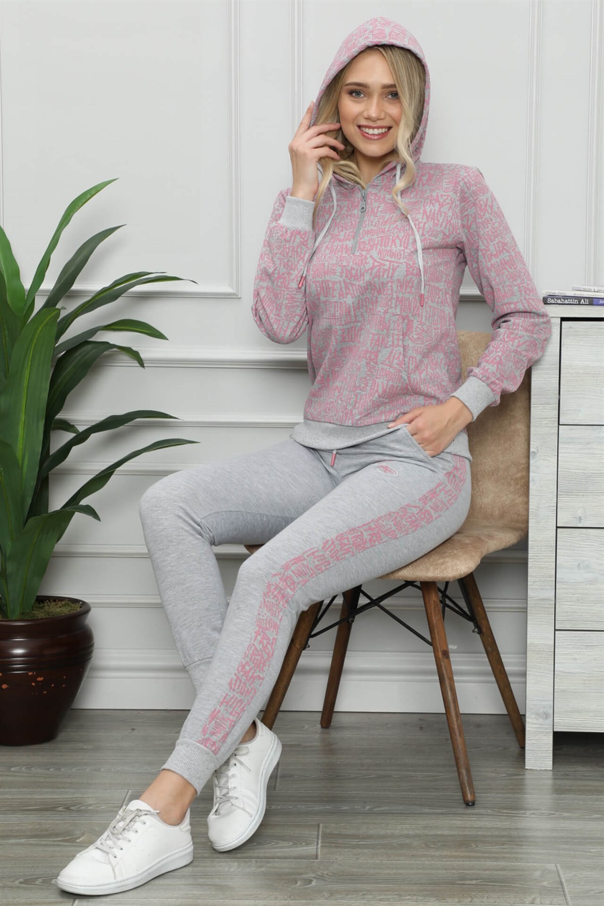 moda çizgi Kadın Pamuk Kapşonlu Cepli Eşofman Takım