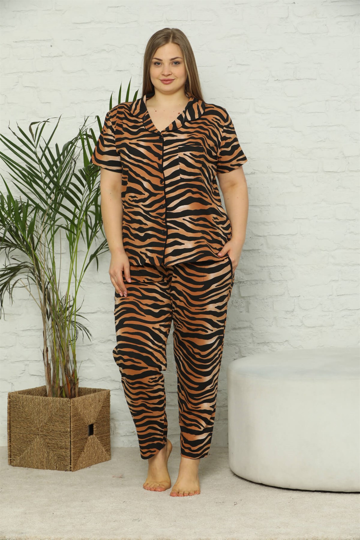 Kadın Pamuklu Cepli Kısa Kol Büyük Beden Pijama Takımı