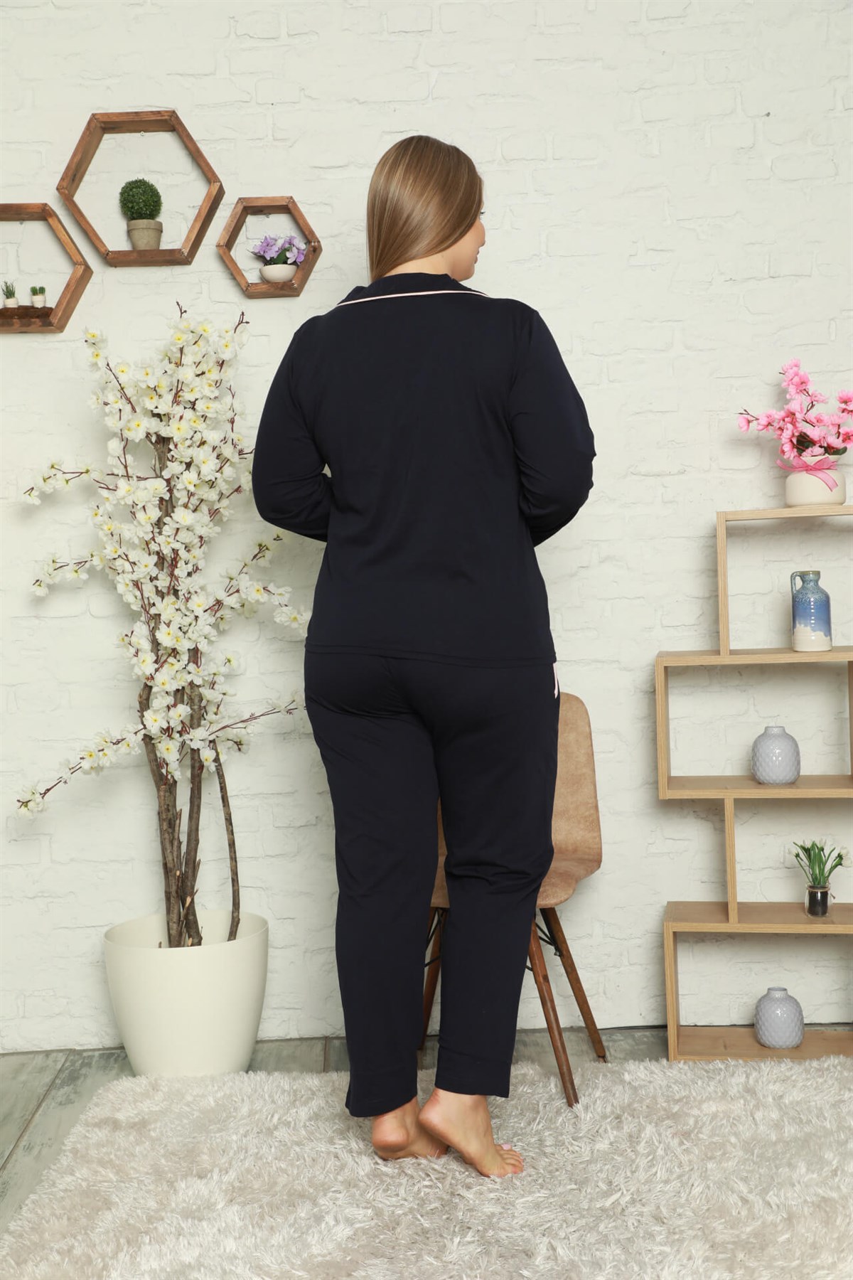 Kadın Pamuklu Cepli Uzun Kol Büyük Beden Pijama Takımı