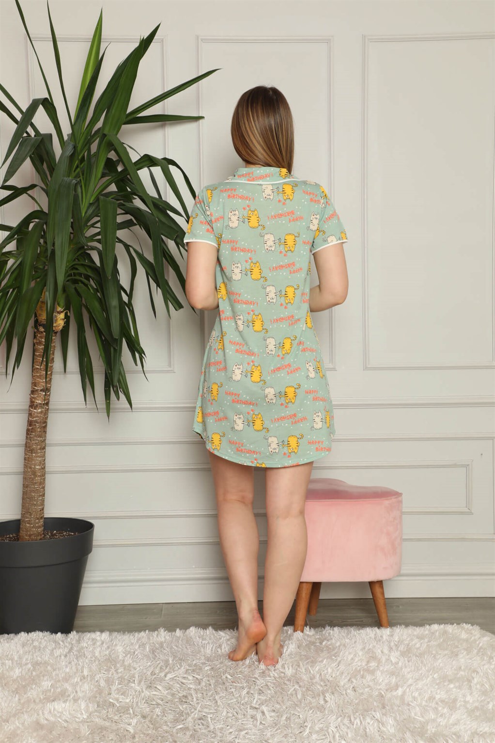 Moda Çizgi Kadın Pamuklu Önden Düğmeli Gecelik