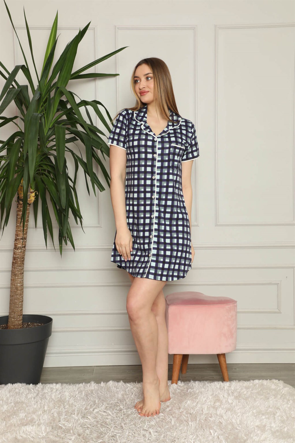 Moda Çizgi Kadın Pamuklu Önden Düğmeli Gecelik