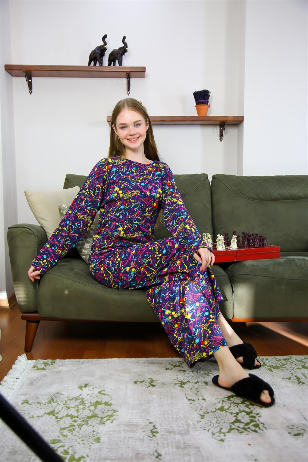 Moda Çizgi Kadın Penye Bol Paça Pijama Takım