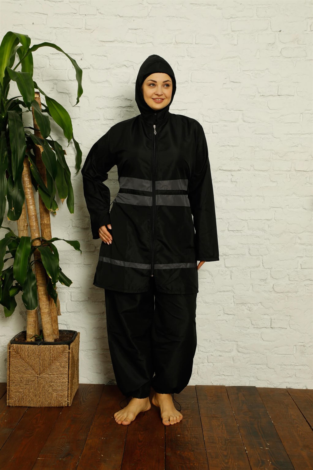 Moda Çizgi Tam Tesettür Büyük Beden Mayo