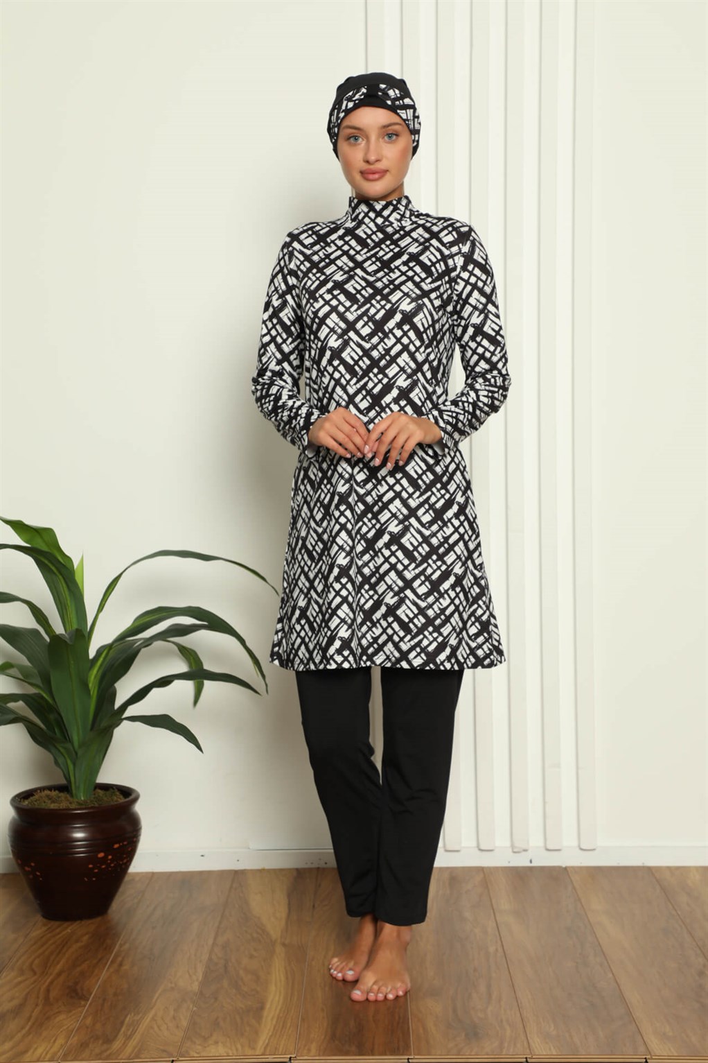 Moda Çizgi Tam Tesettür Dijital Desenli Mayo 31037