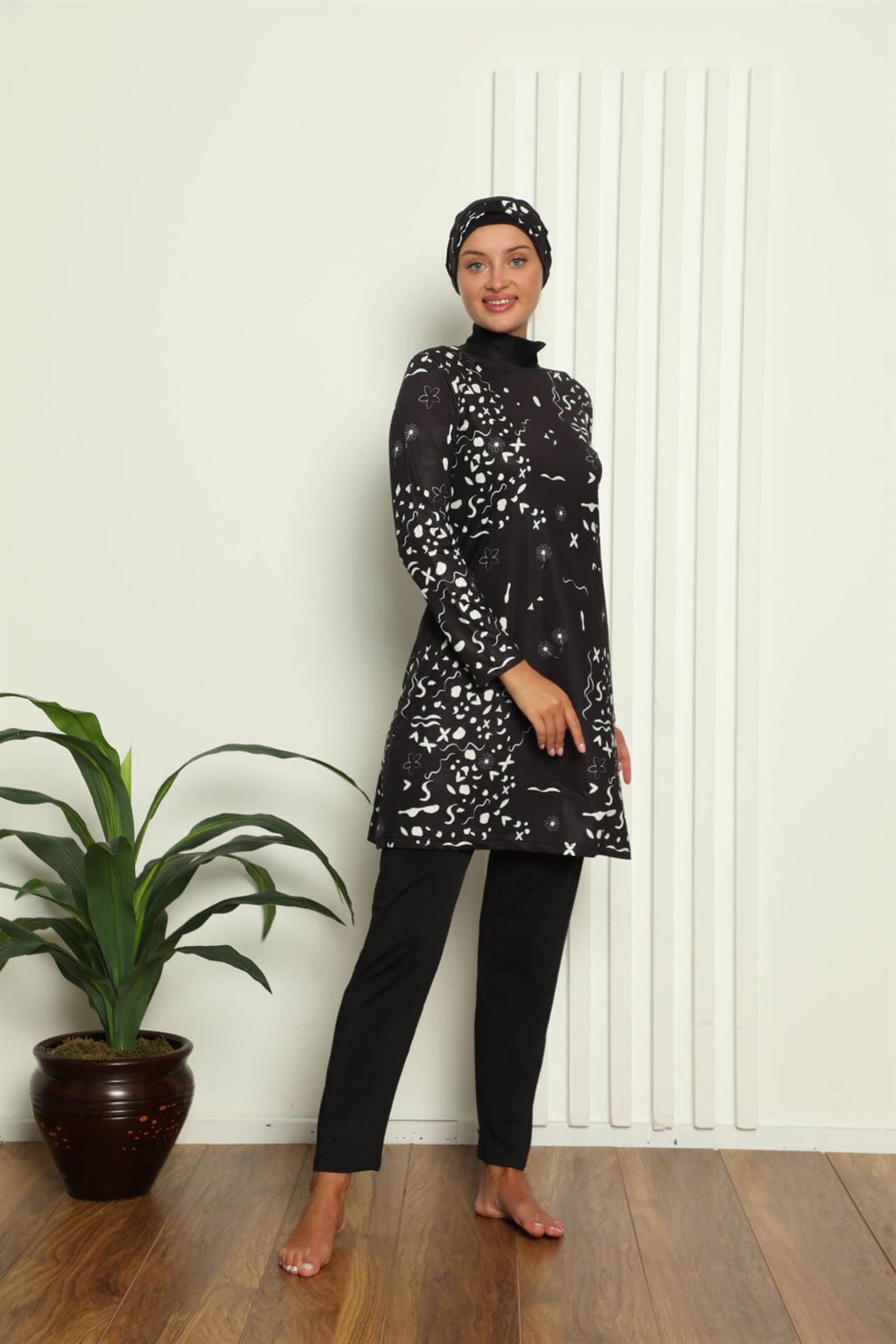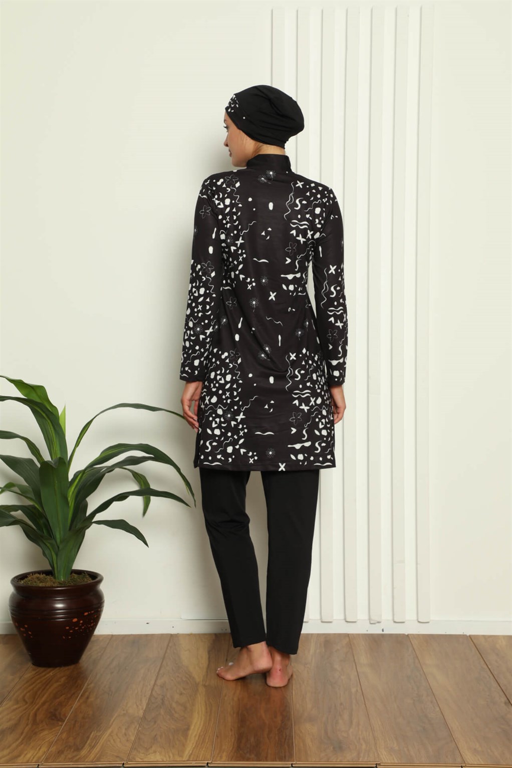 Moda Çizgi Tam Tesettür Dijital Desenli Mayo 31052
