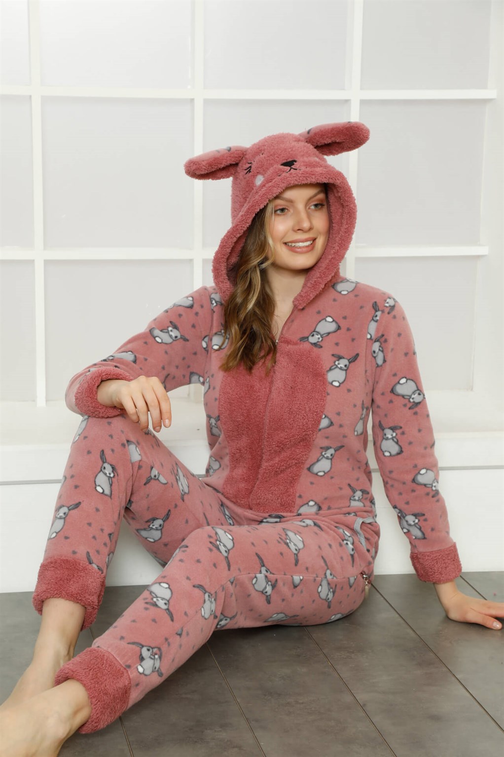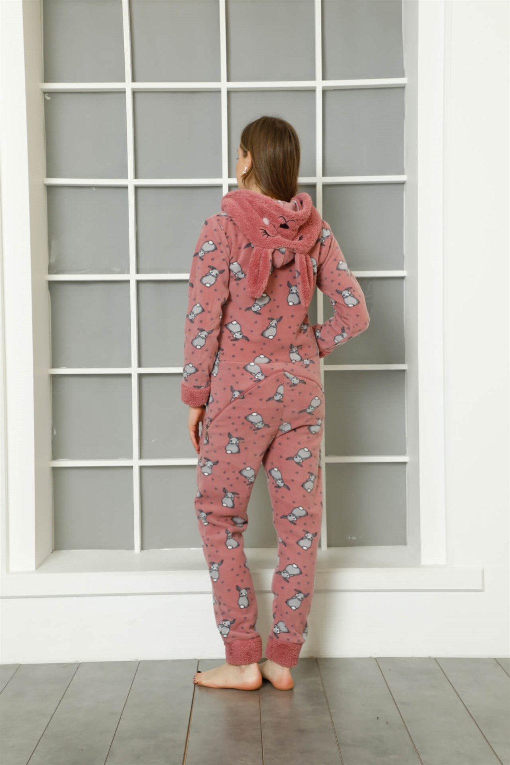 Moda Çizgi Welsoft Polar Kadın Kapşonlu Tulum 818107