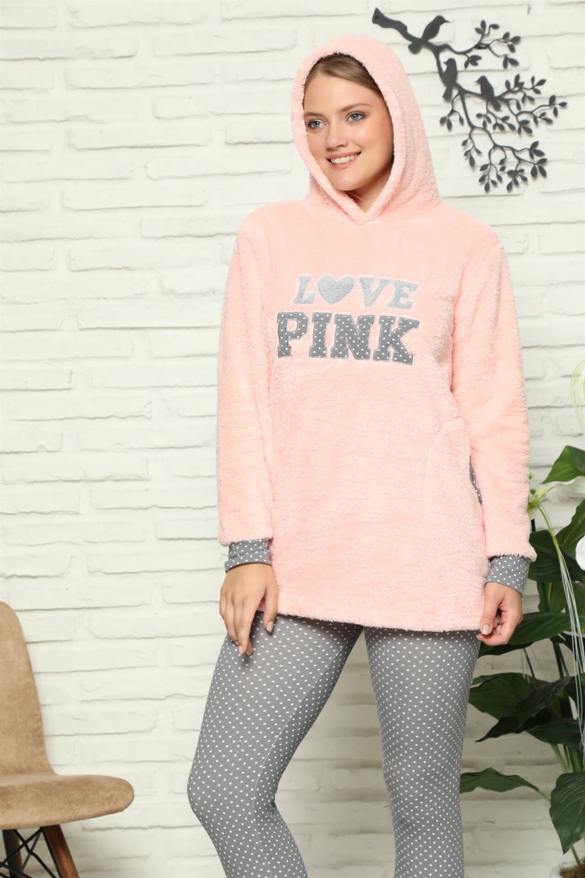 Welsoft Polar Kapşonlu Taytlı Kadın Pijama Takımı